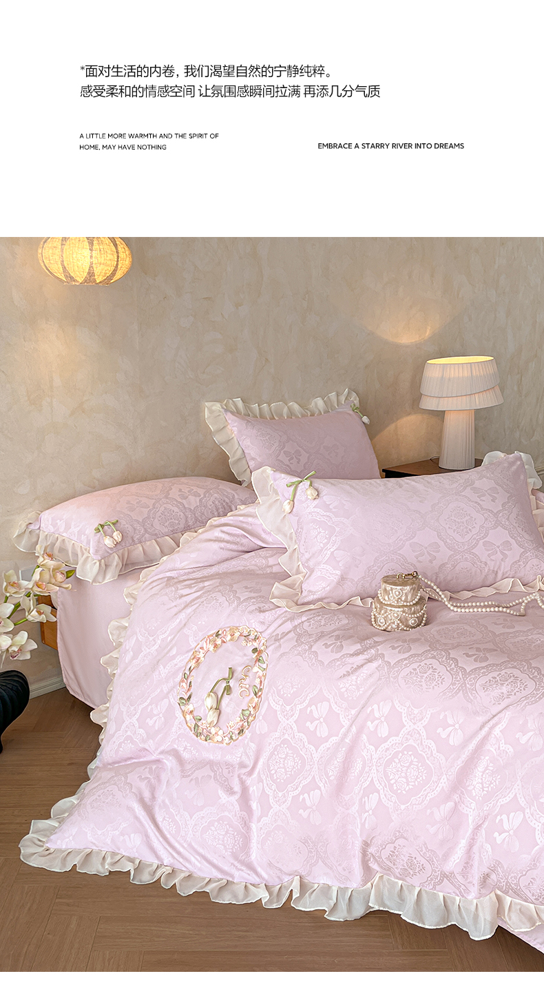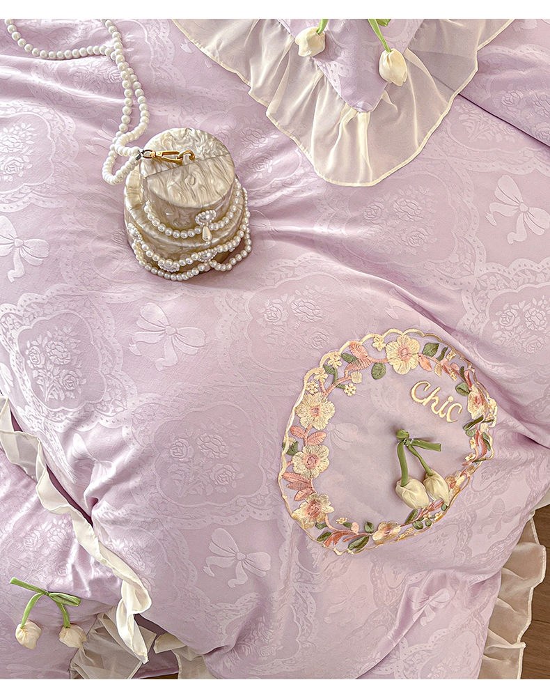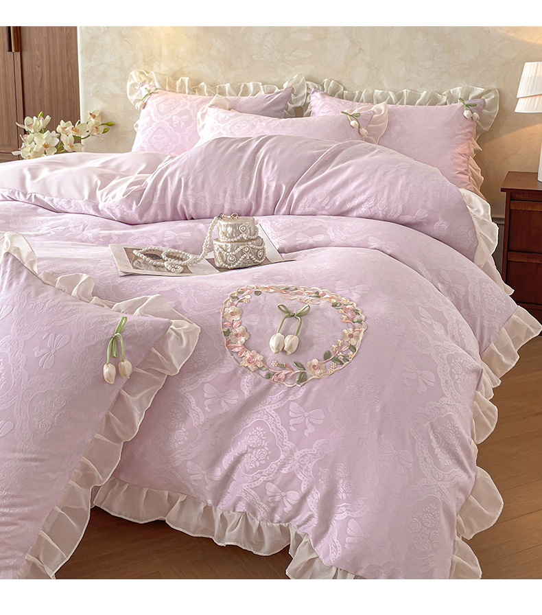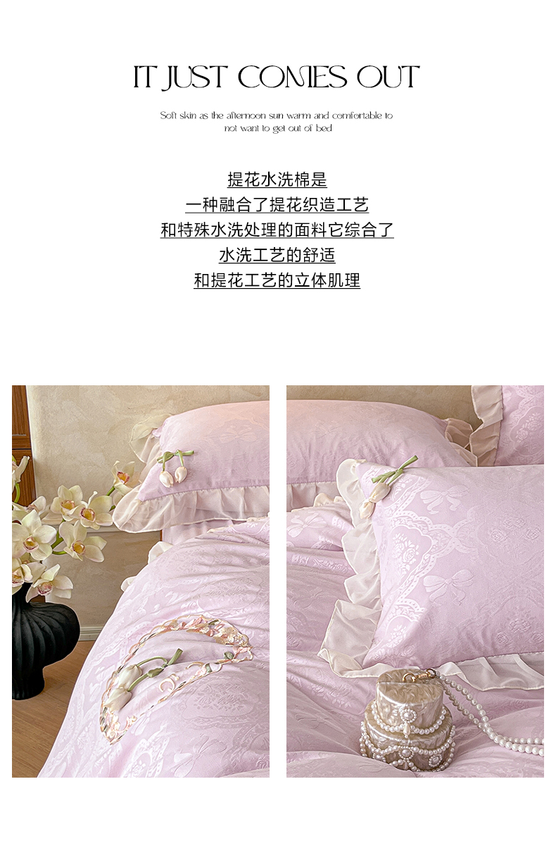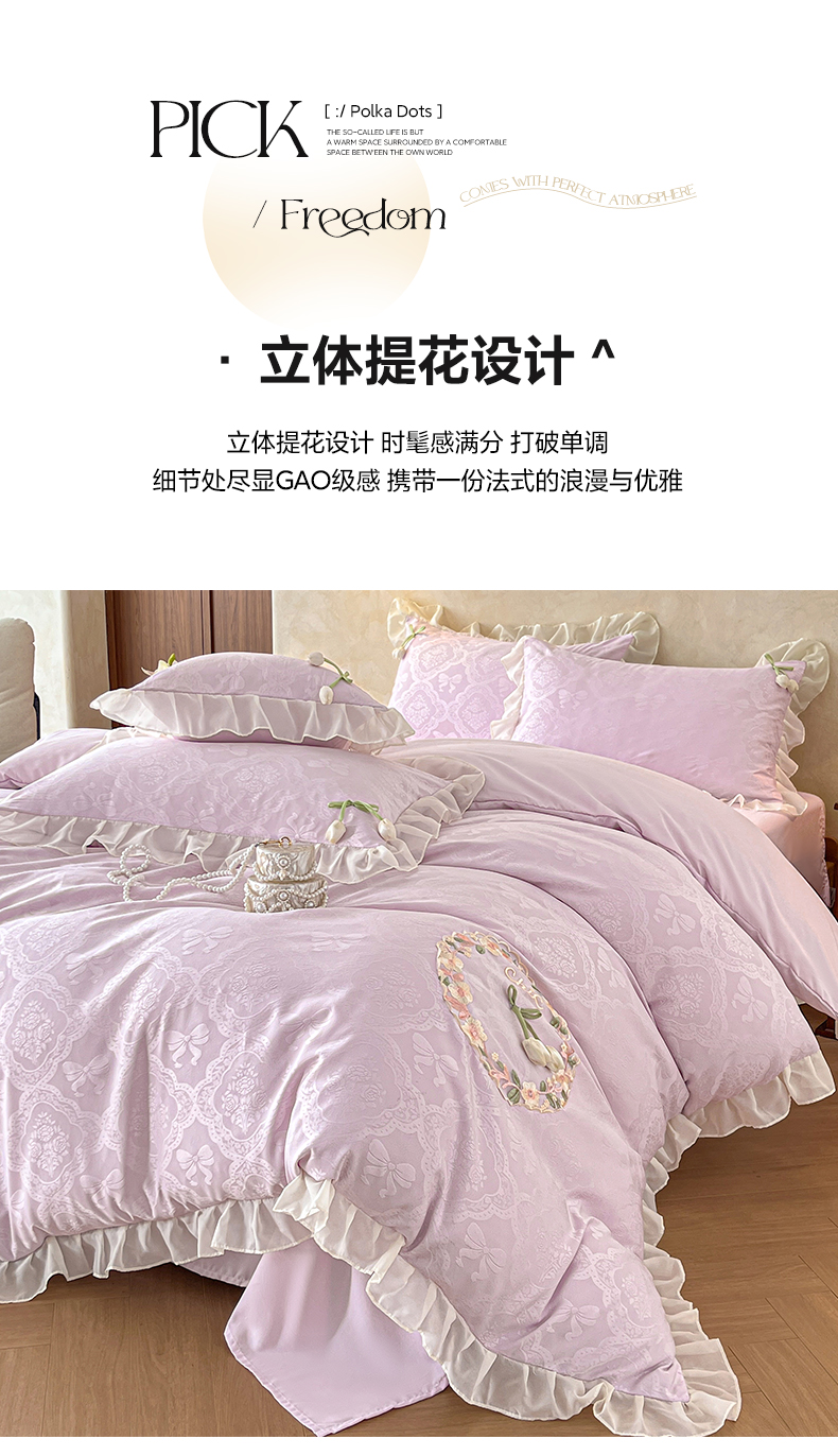 当前位置: 91家纺网 > 商品网购 > 床品套件 > 四件套 > 水洗棉四件套 > 易禾家纺 2026春夏新款提花水冼棉刺绣雪纺花边四件套-典雅 典雅-紫