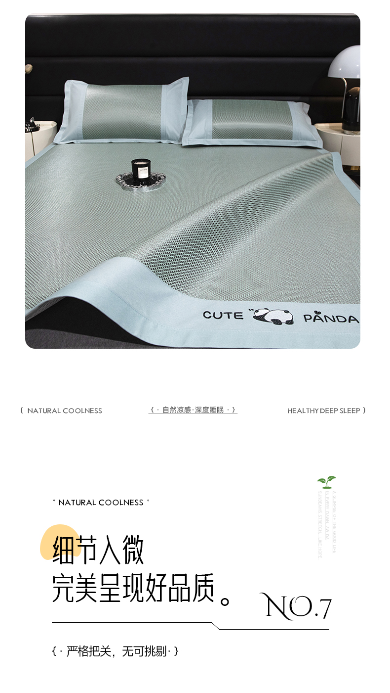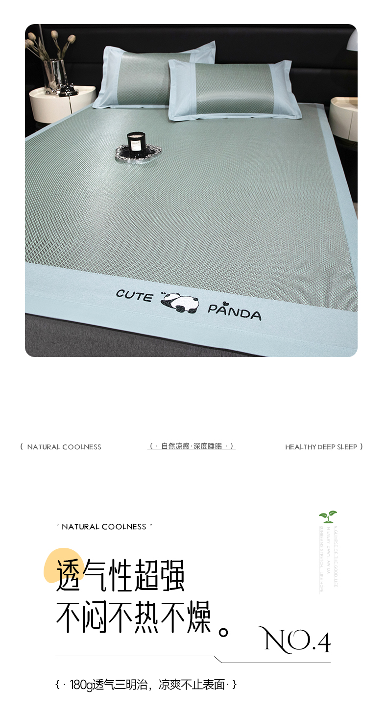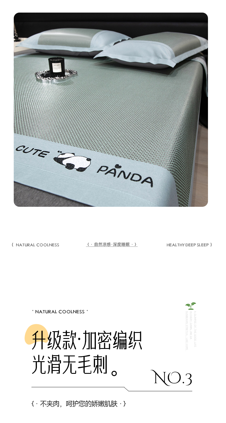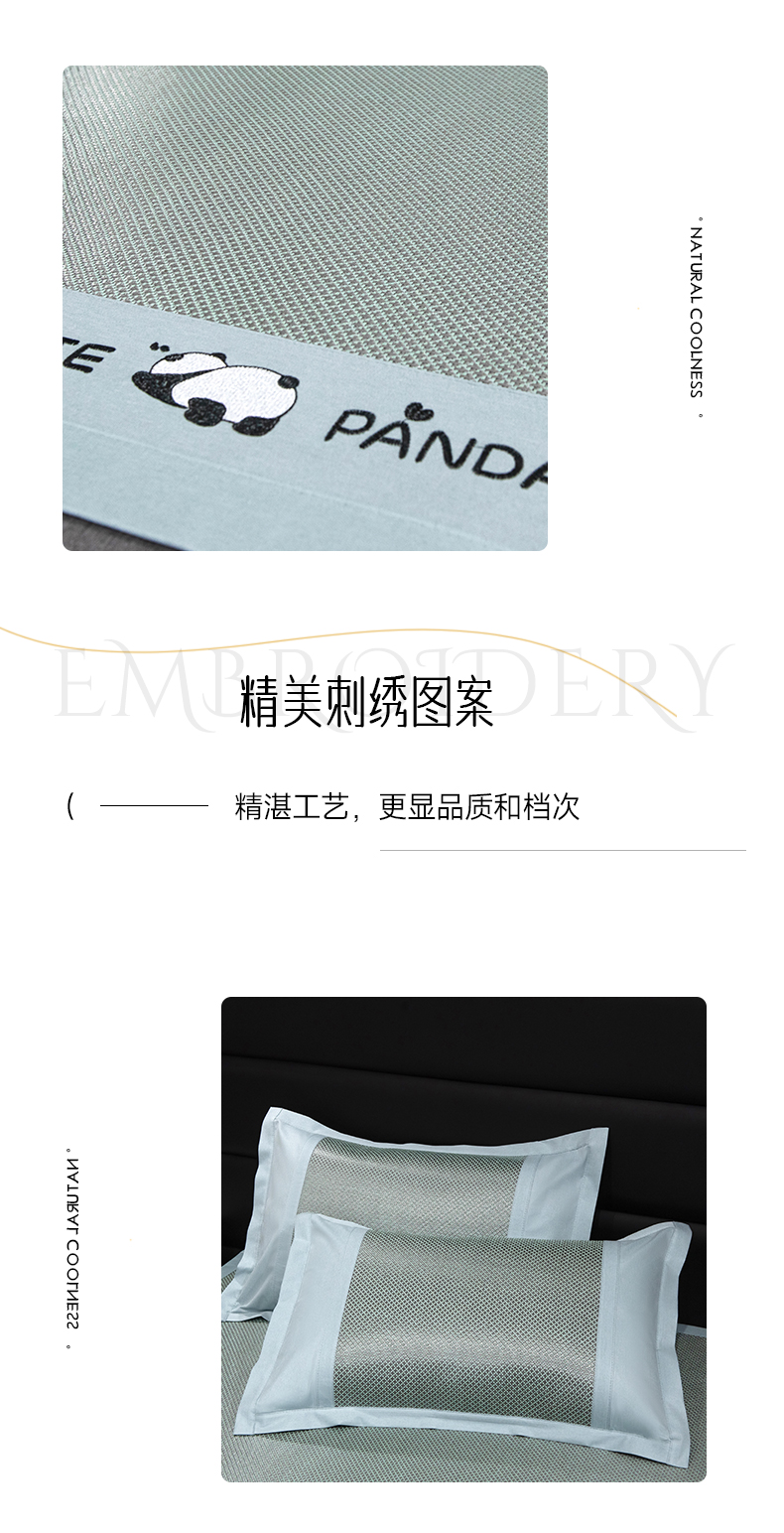 商品名称:倾慕家纺 2026新款A类刺绣冰藤席--床席款 刺绣熊猫绿色床席款