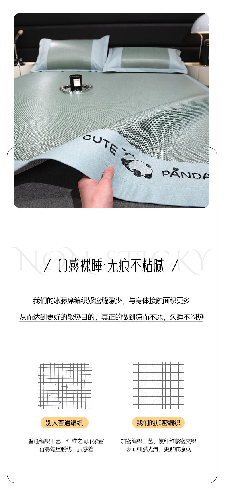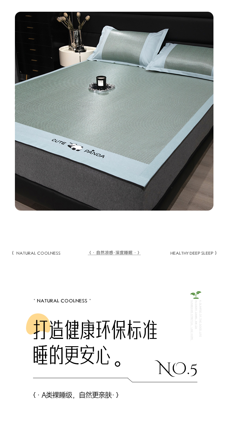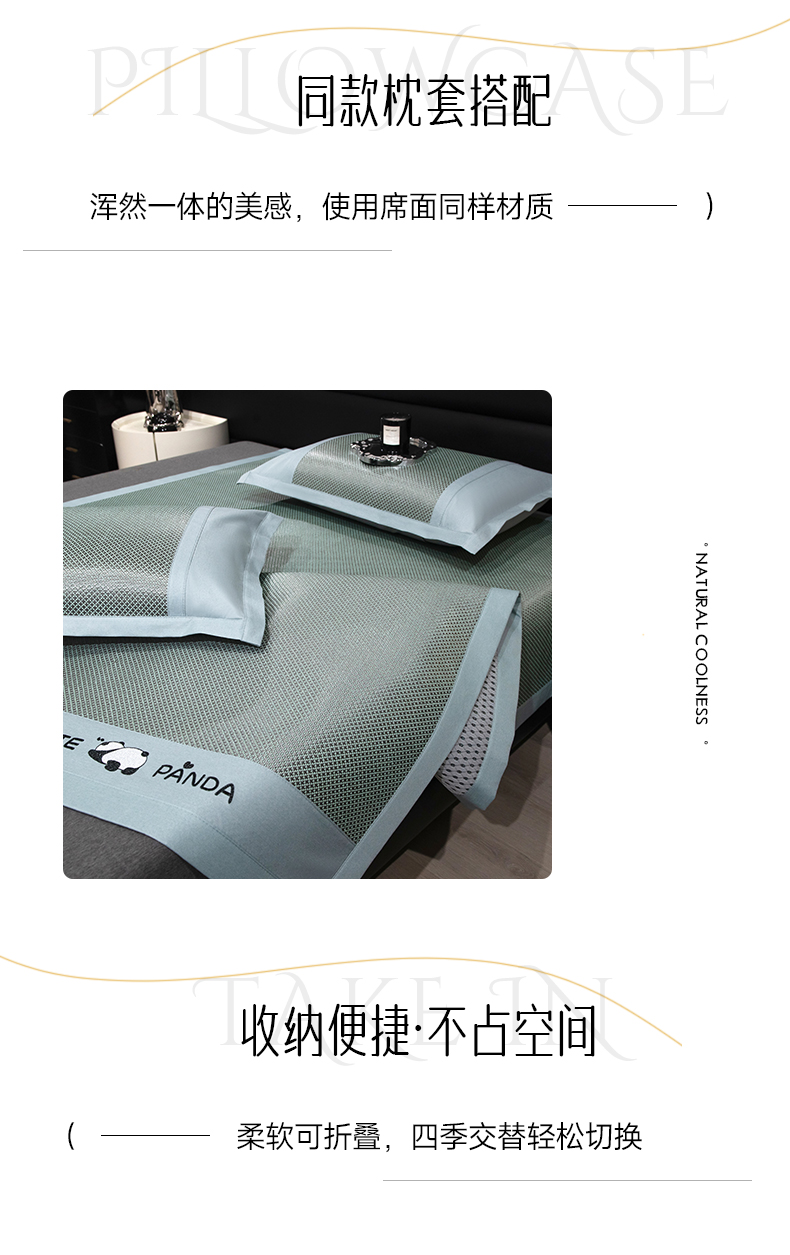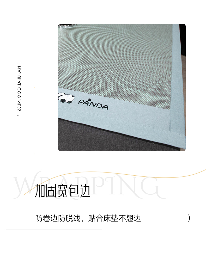 商品名称:倾慕家纺 2026新款A类刺绣冰藤席--床席款 刺绣熊猫绿色床席款