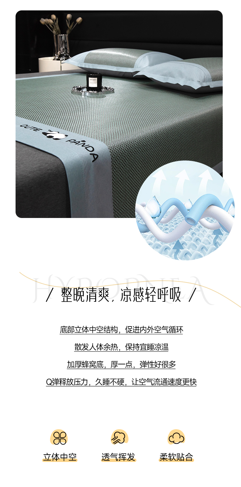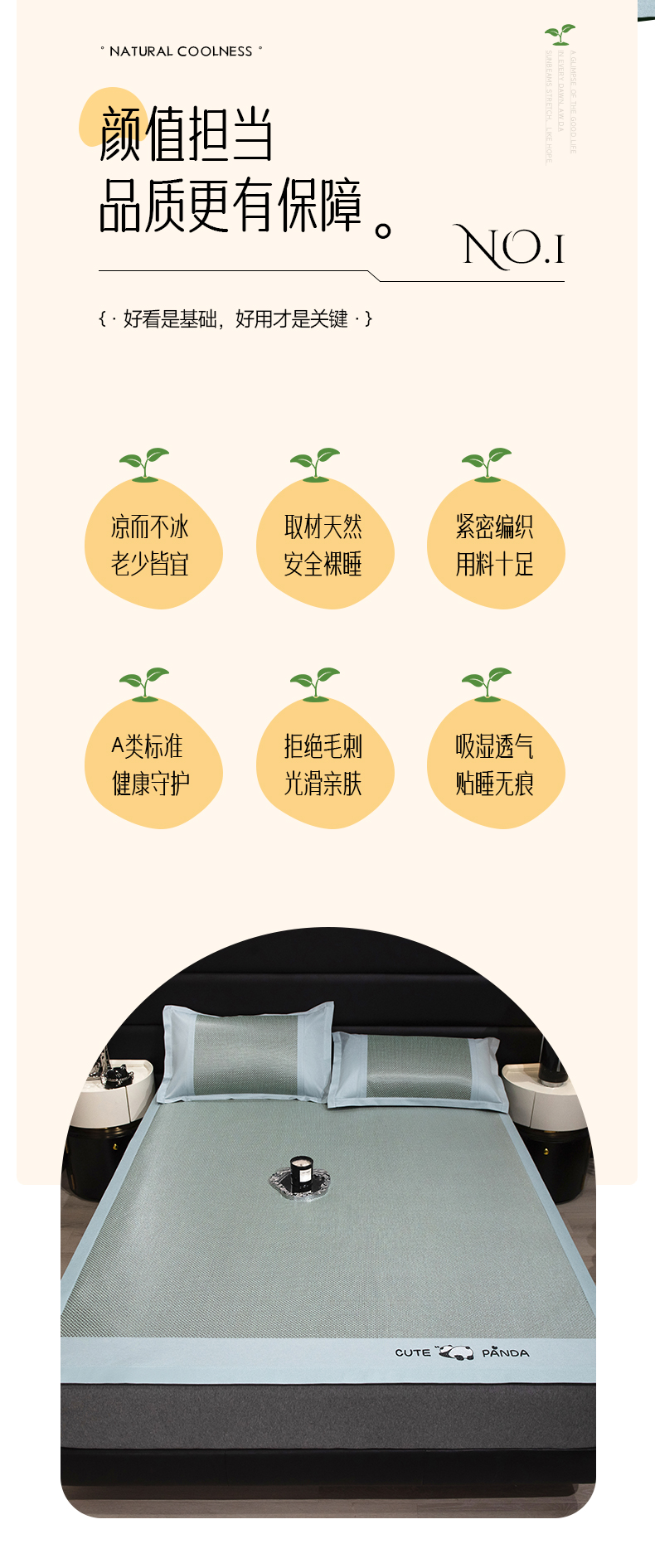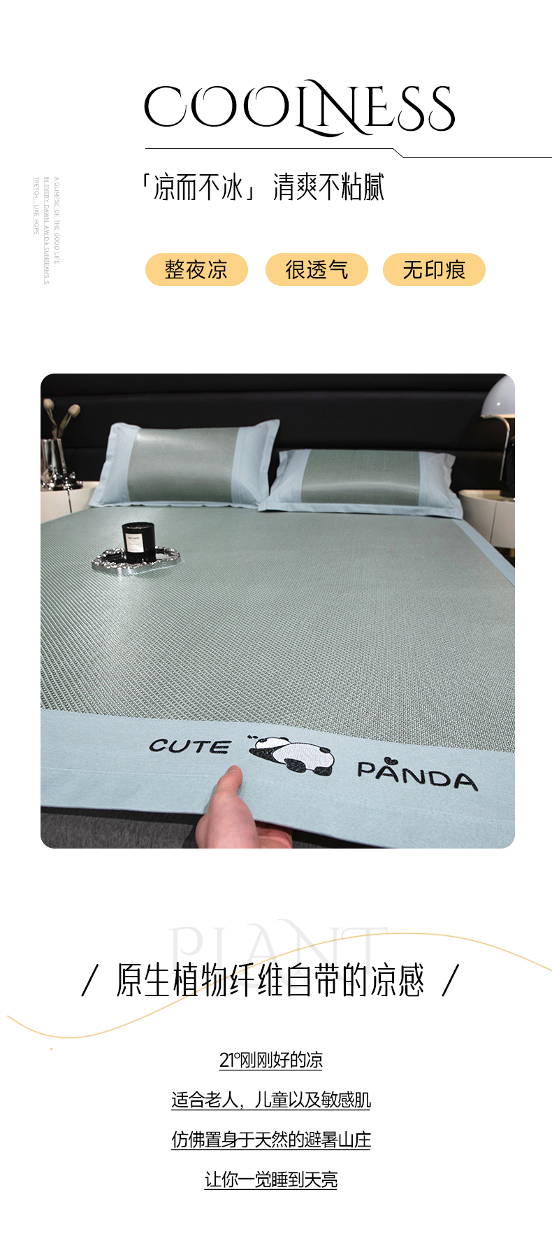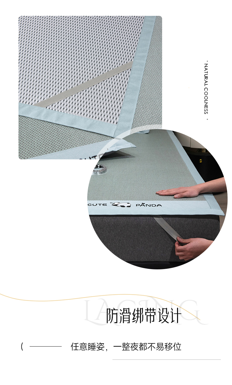 商品名称:倾慕家纺 2026新款A类刺绣冰藤席--床席款 刺绣熊猫绿色床席款