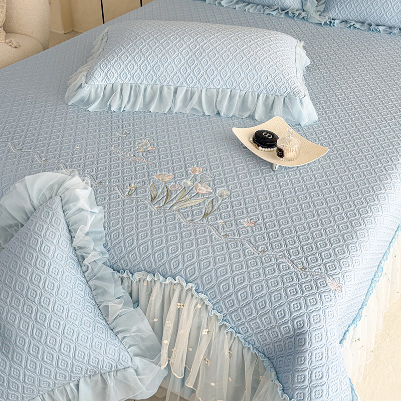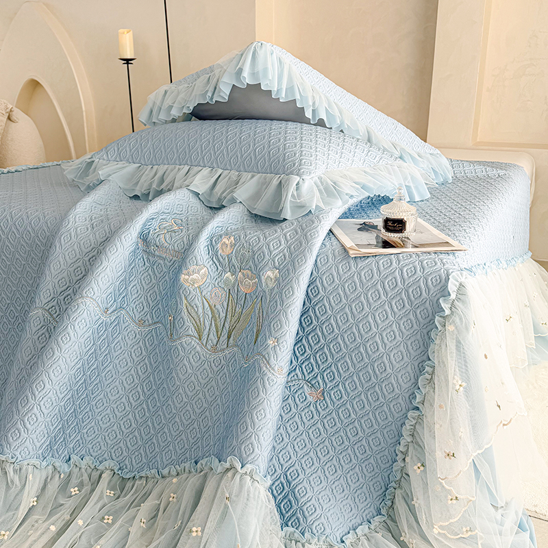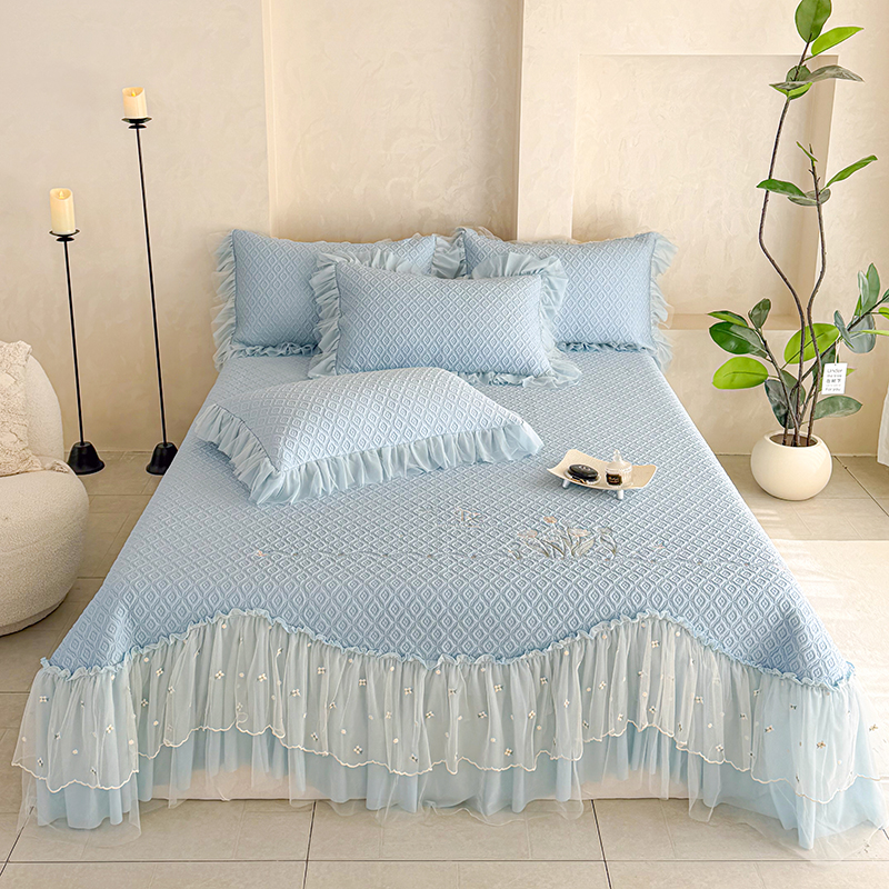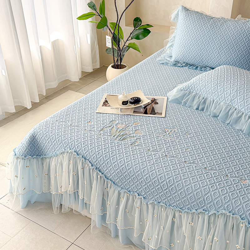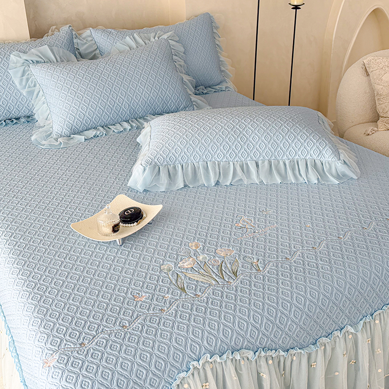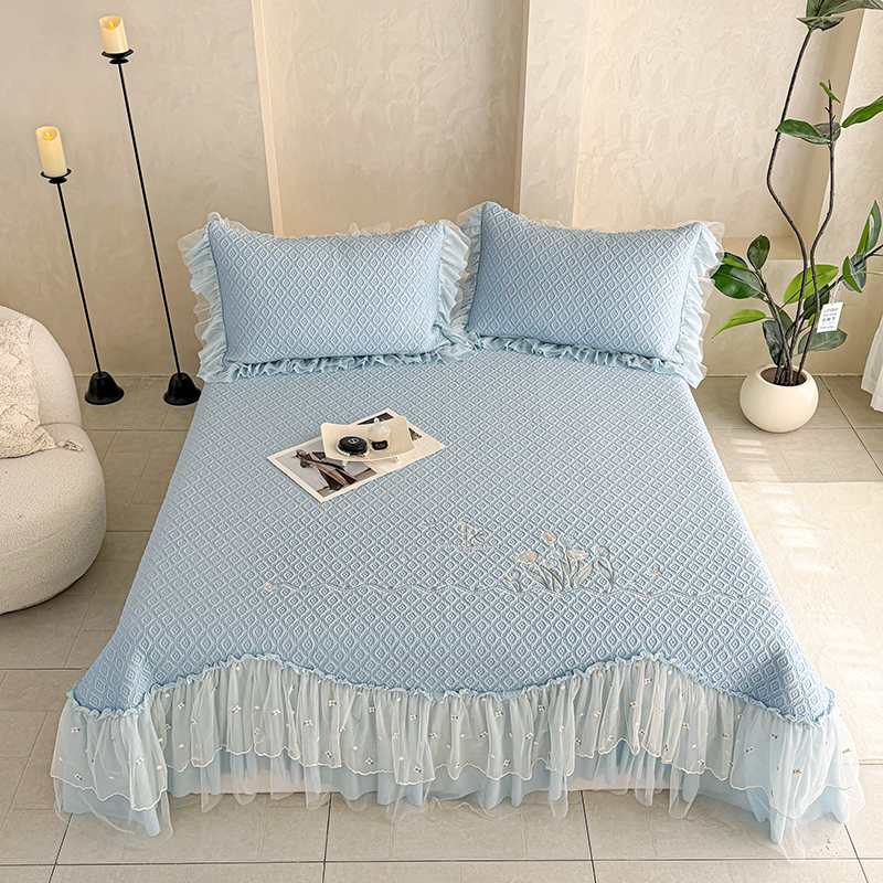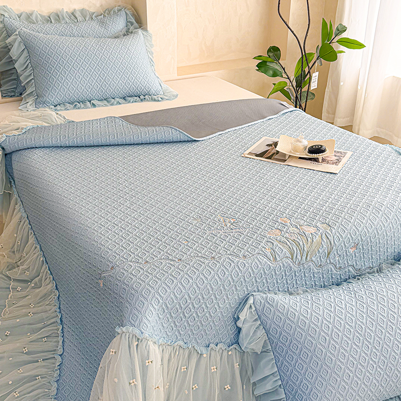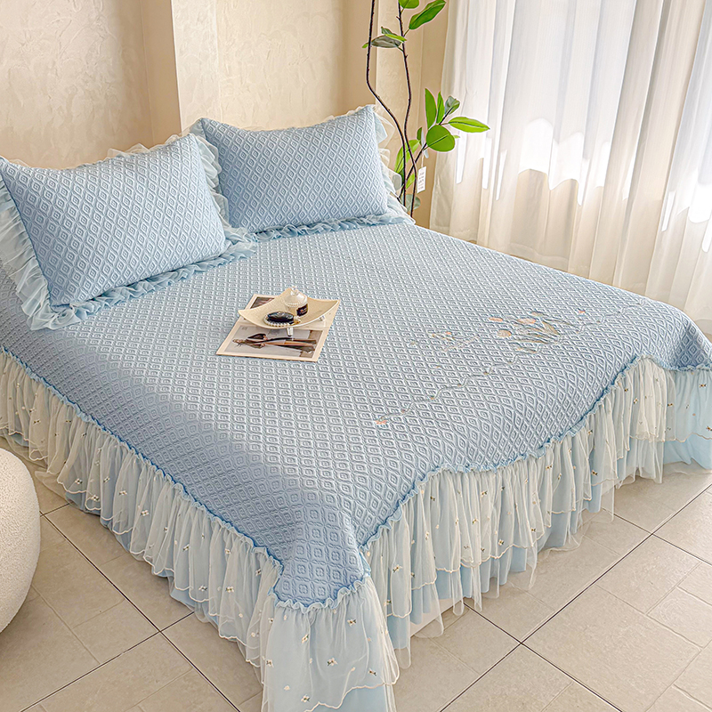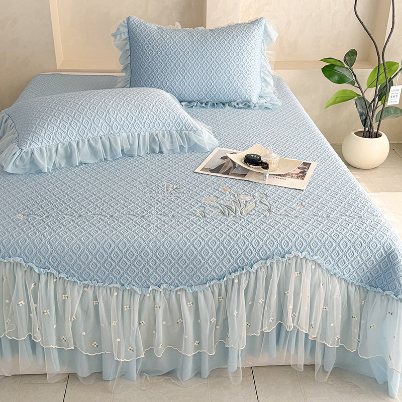 当前位置: 91家纺网 > 商品网购 > 床上用品 > 凉席 > 其他凉席 > 红夫人 2026新款凉豆豆PE高分子凉感绣花弯边床裙凉席三件套--安然影(三层花边+三明治复合+精美手提包) 安然影蓝色
