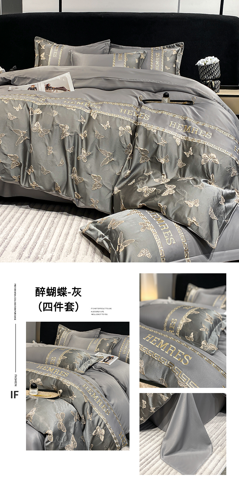 (总)子曰 2025新款A类法式小香风黑边款兔绒牛奶绒四件套,黑边款-豹纹灰,黑边款-赫本,黑边款-花语,黑边款-曼丽,黑边款-莫奈,黑边款-萦漫