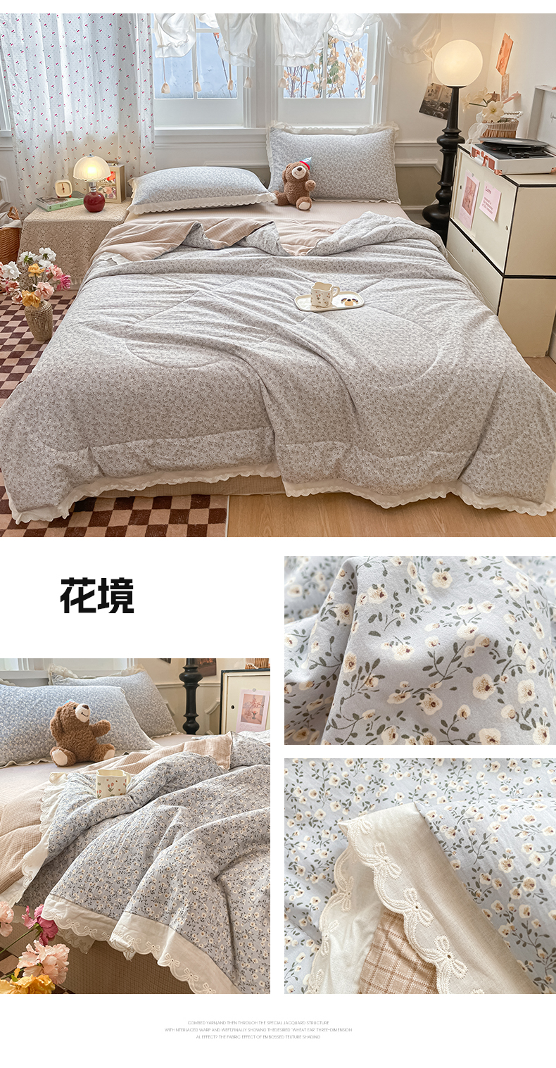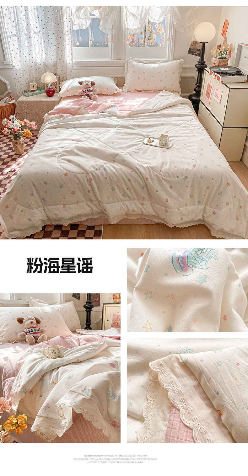 (总)老帅的工厂店 2026新款A类古棉花边抗菌夏被,碟栖,粉海星谣,粉蔷织,花境,花影,结语,鹿踪,猫语,奶芙犬,奶咖犬格,苹果小象,青柠果篮,狮野花集,兔盯花语,兔序,杏棠,织本碟