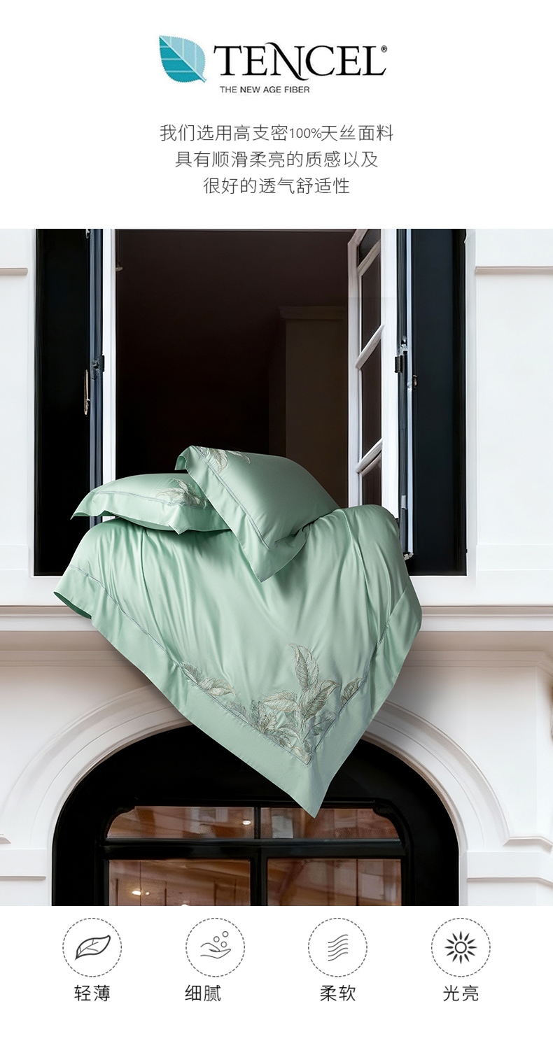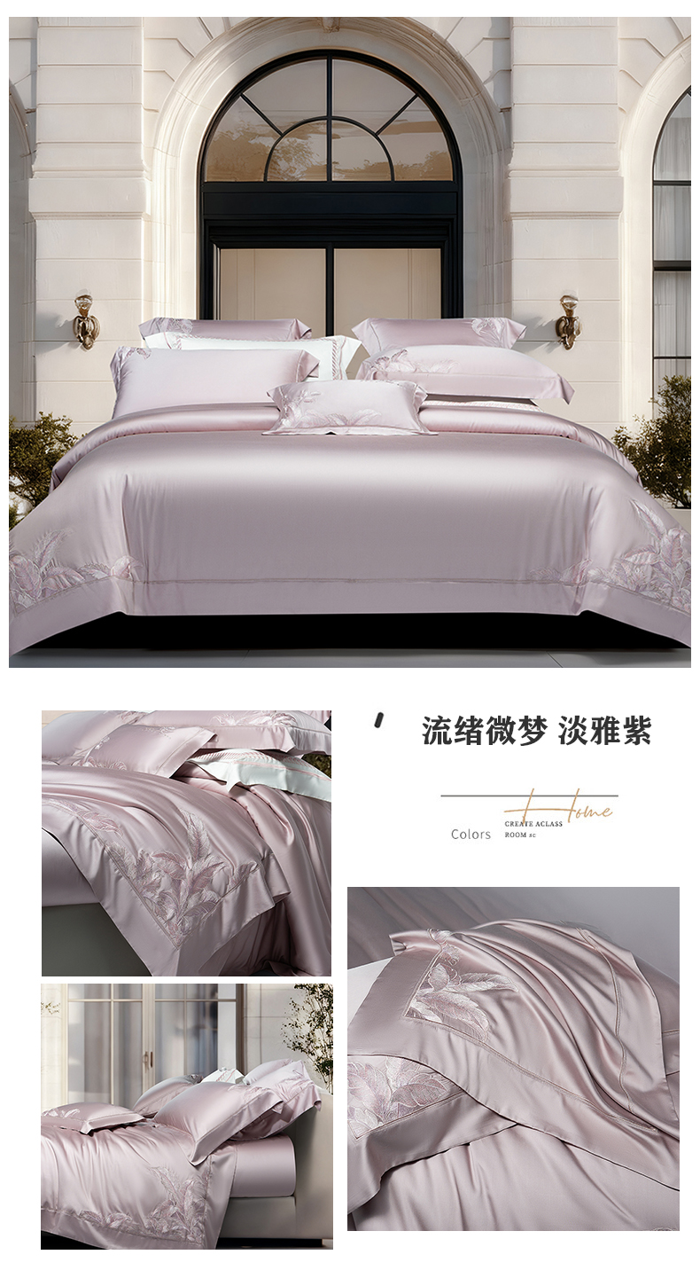 (总)诗黛尔 2026春夏新款60S长绒棉刺绣雅姿系列四件套,雅姿- 浅茶杏,雅姿-丁香紫,雅姿-豆绿,雅姿-粉豆沙,雅姿-粉玉,雅姿-红豆沙,雅姿-天蓝,雅姿-银灰