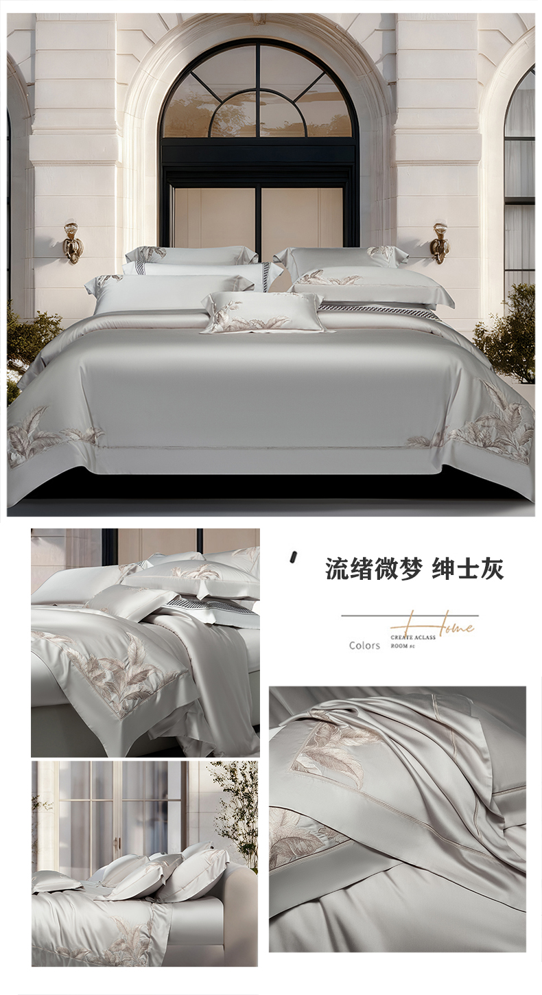 (总)诗黛尔 2026春夏新款长绒棉刺绣四件套黎境系列,黎境-香槟金,黎境-极光蓝,黎境-卡其色,黎境-落樱粉,黎境-绅士灰