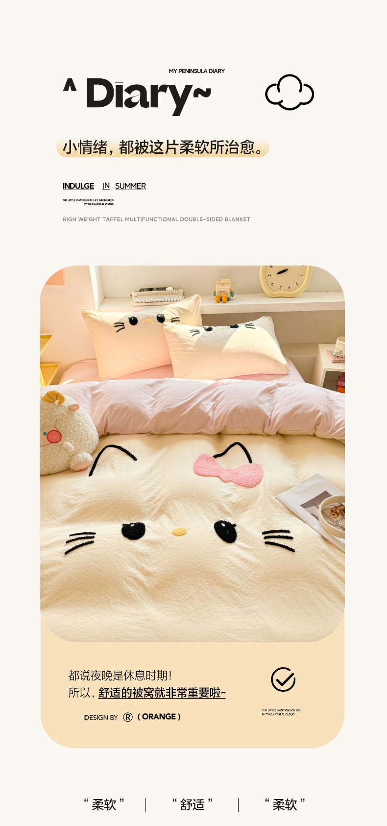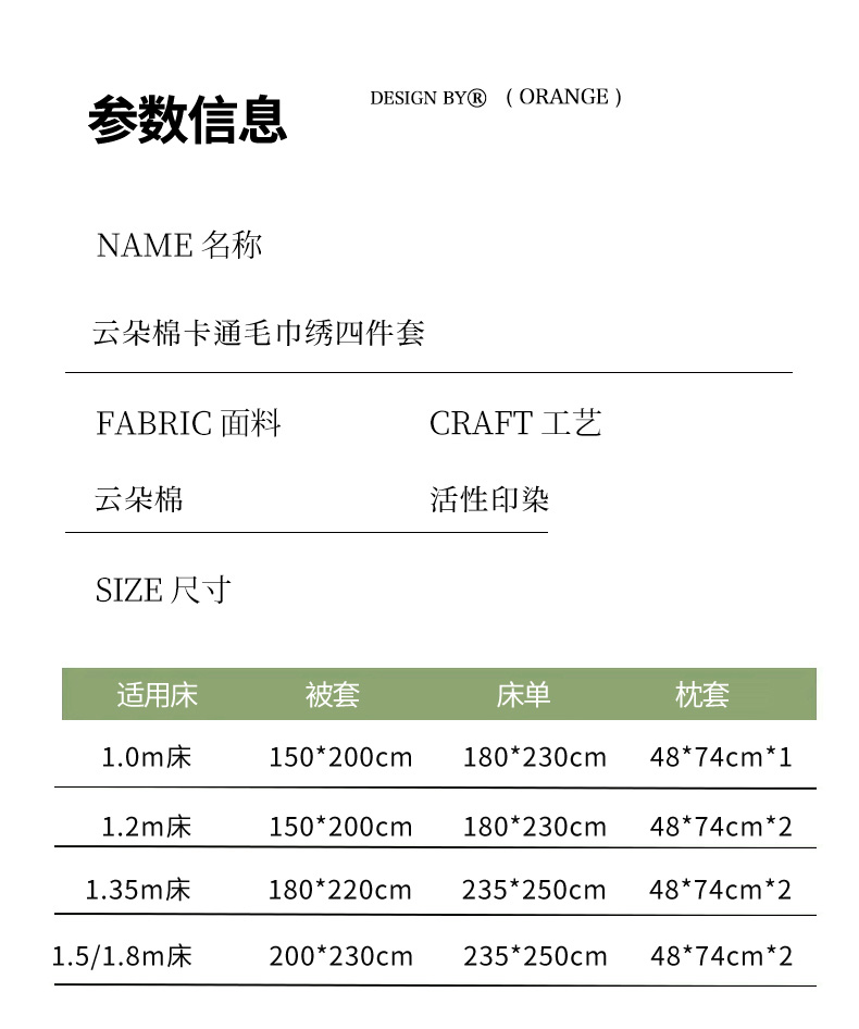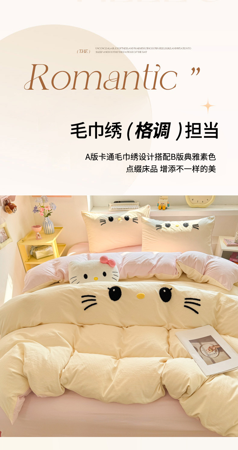 商品名称:雨帆家纺 2026新款云朵棉卡通毛巾绣四件套 少女甜美猫