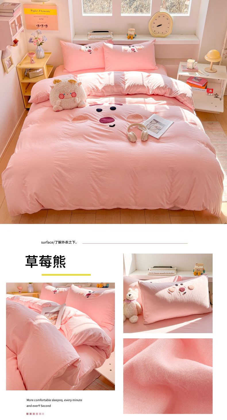 (总)雨帆家纺 2026新款云朵棉卡通毛巾绣四件套,草莓熊,奶油甜美猫,奶油尼尼,少女甜美猫,奶黄尼尼
