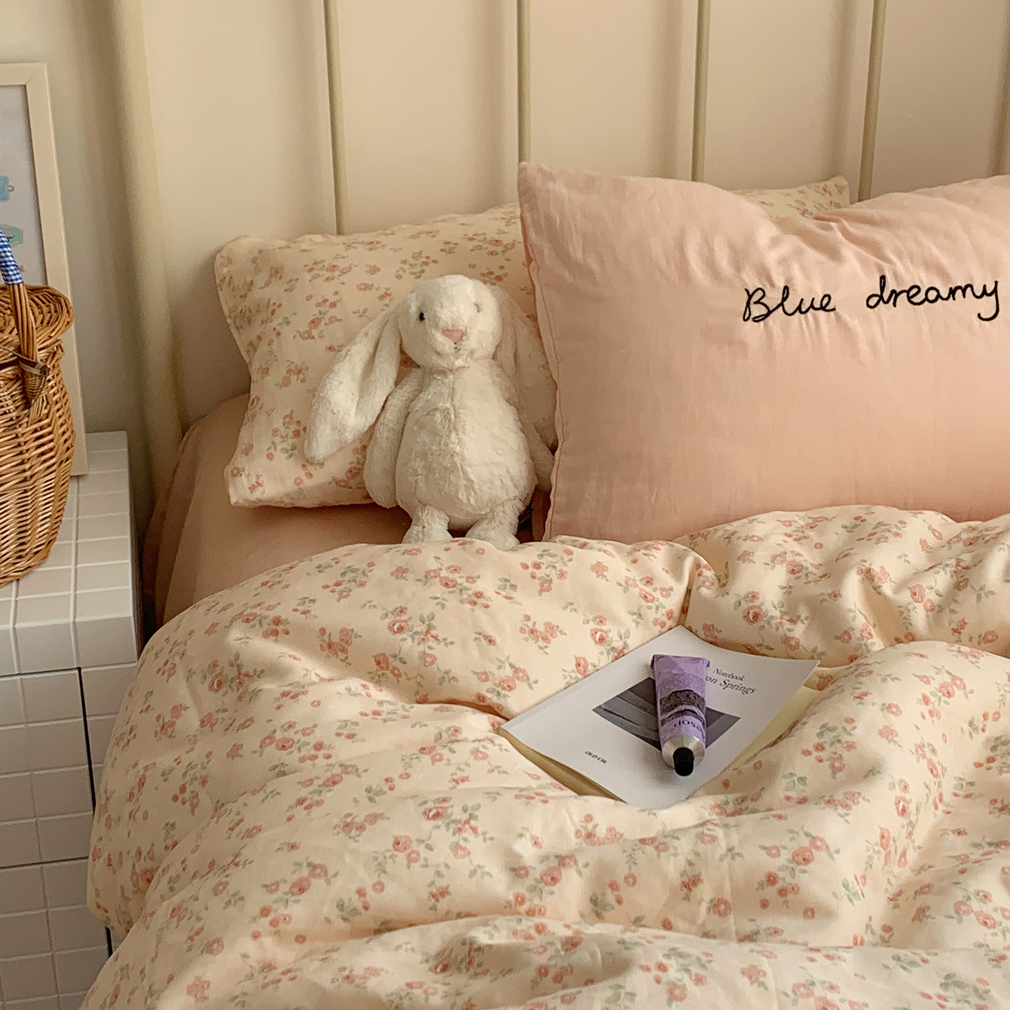商品名称:桃喜 2026新款全棉双层纱碎花枕套混搭系列四件套 繁花拾光