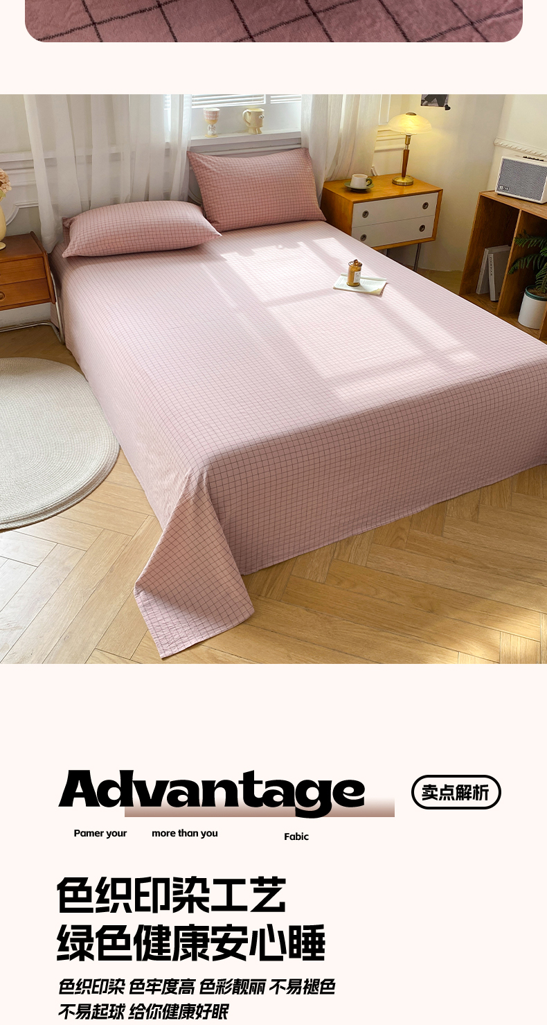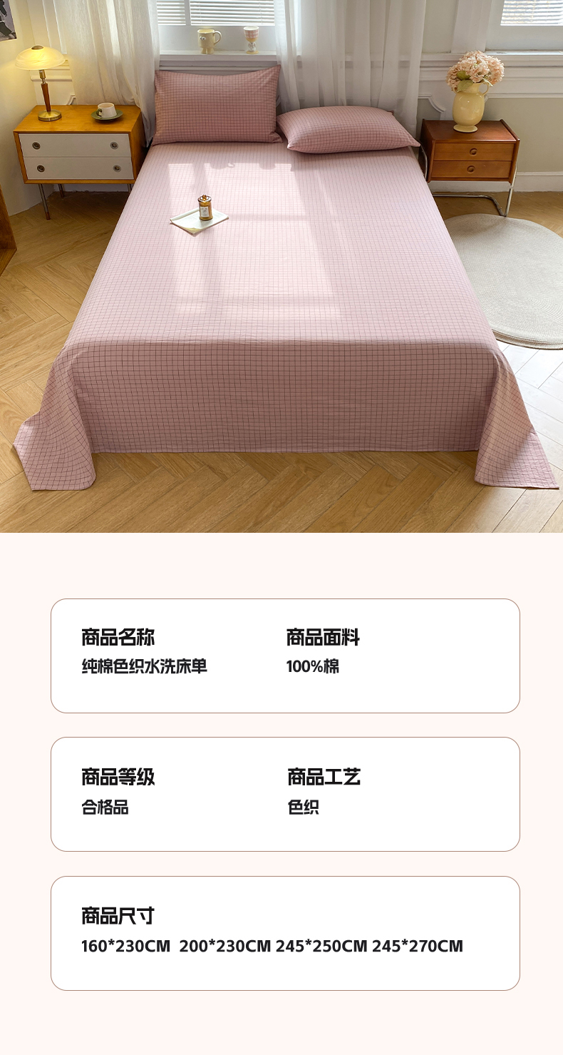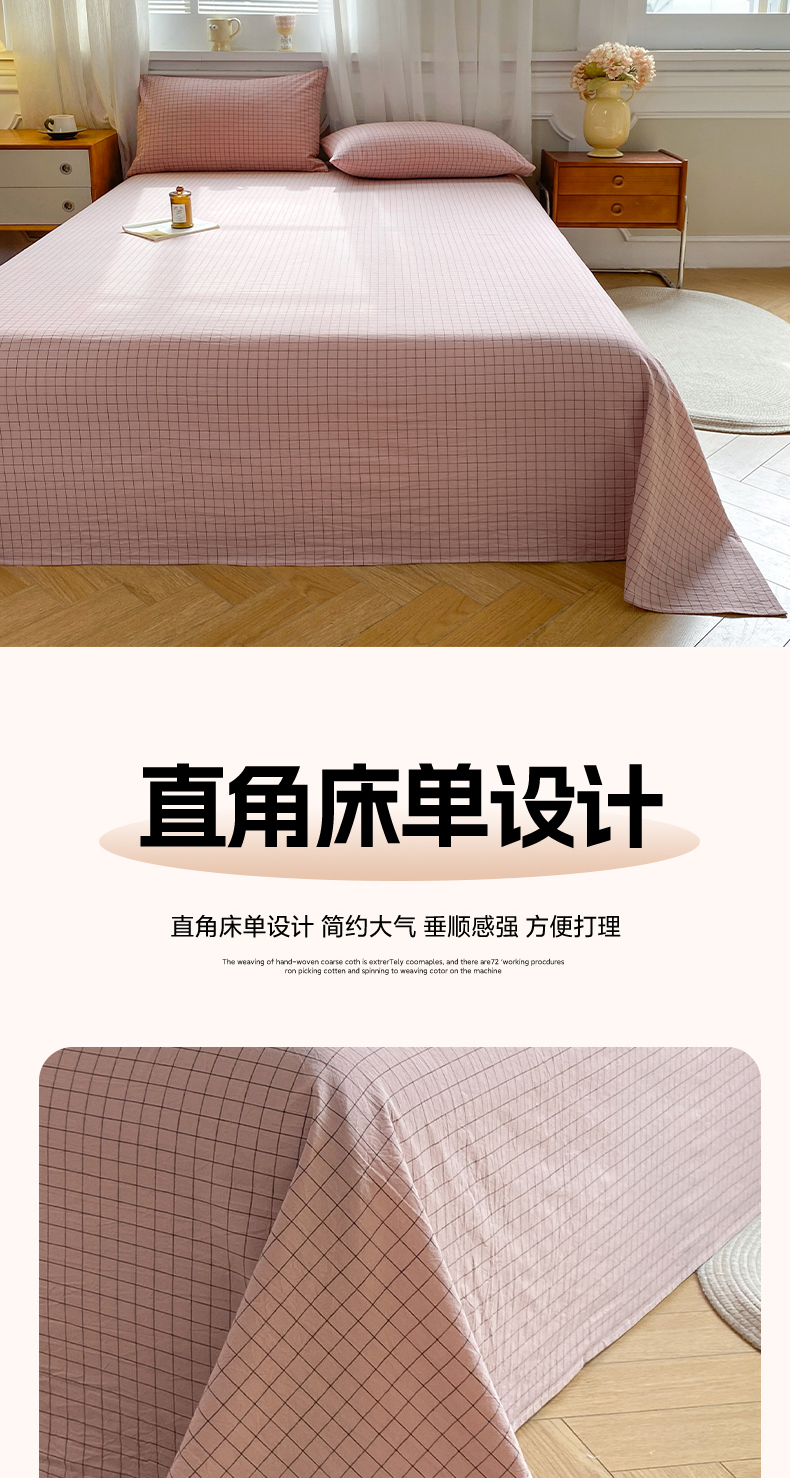• 91家纺网 家纺一手货源 找家纺 恋人优选 2026新款全棉纯棉色织床单单床单床单单件 小粉格