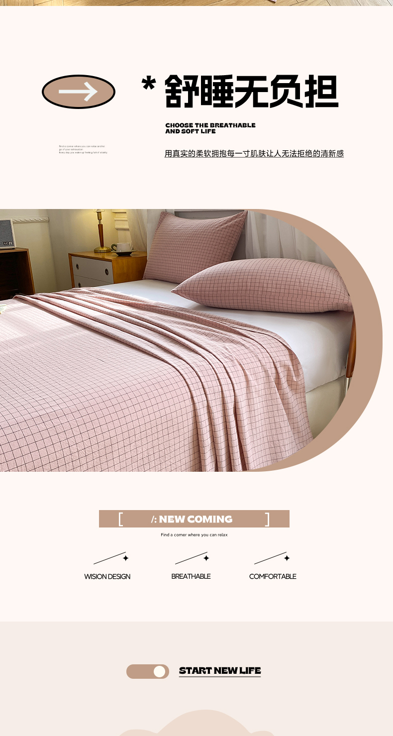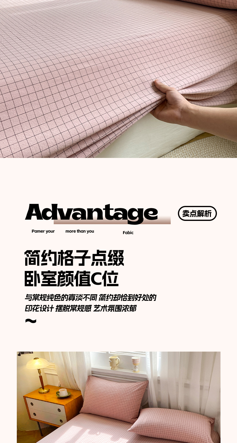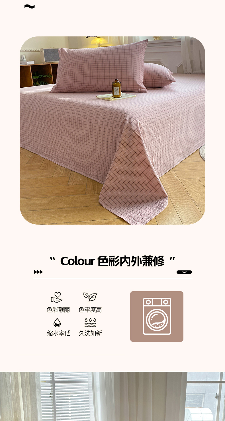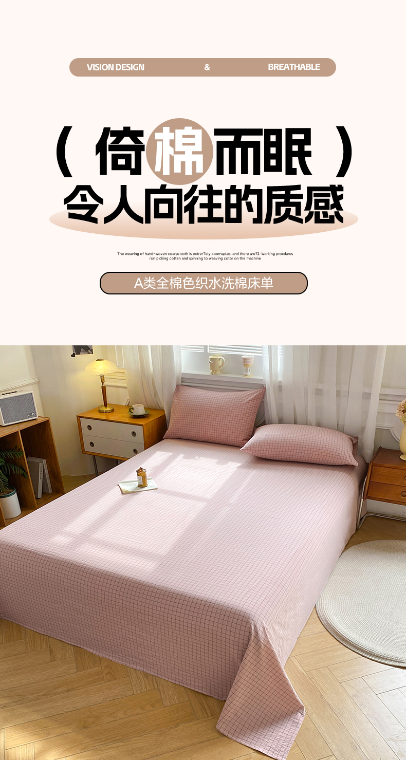 • 91家纺网 家纺一手货源 找家纺 恋人优选 2026新款全棉纯棉色织床单单床单床单单件 小粉格