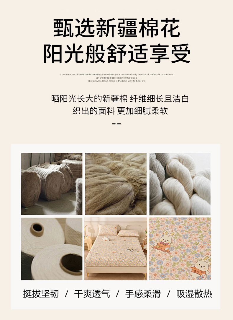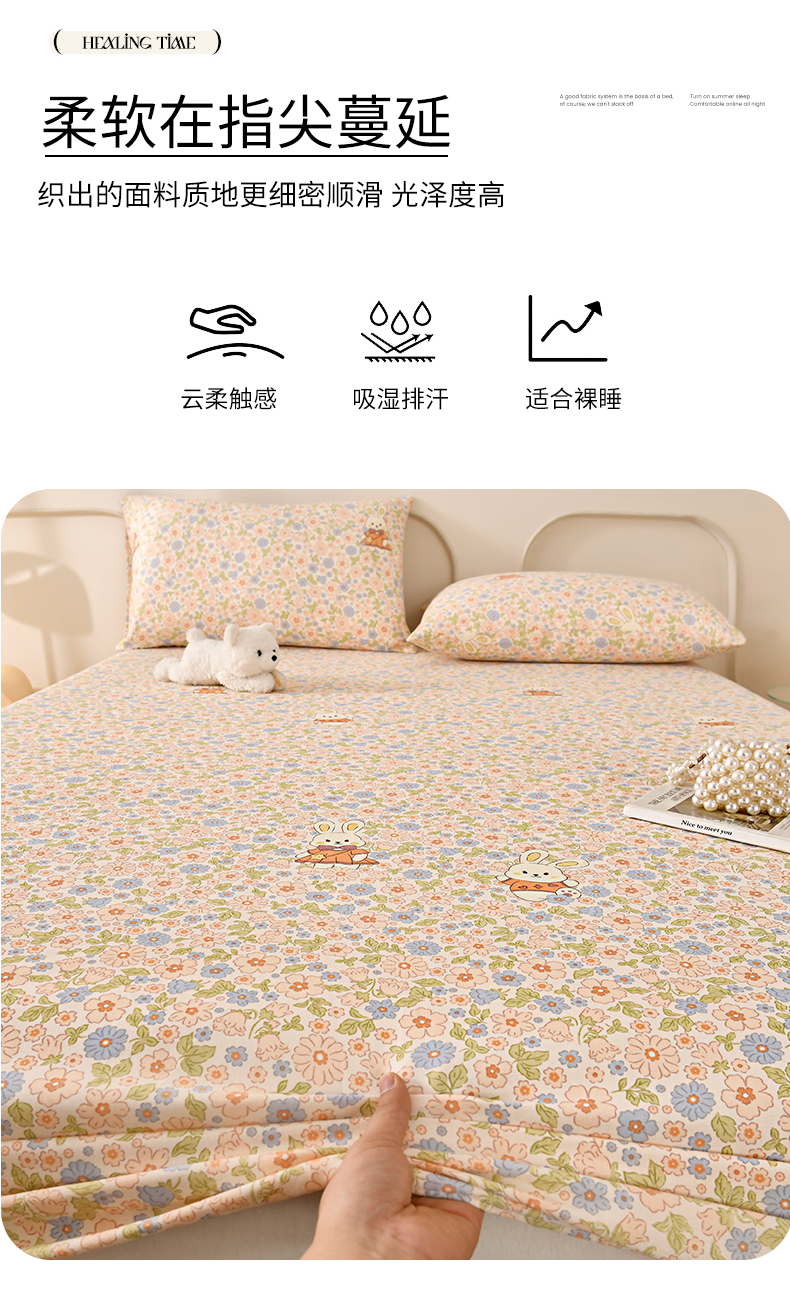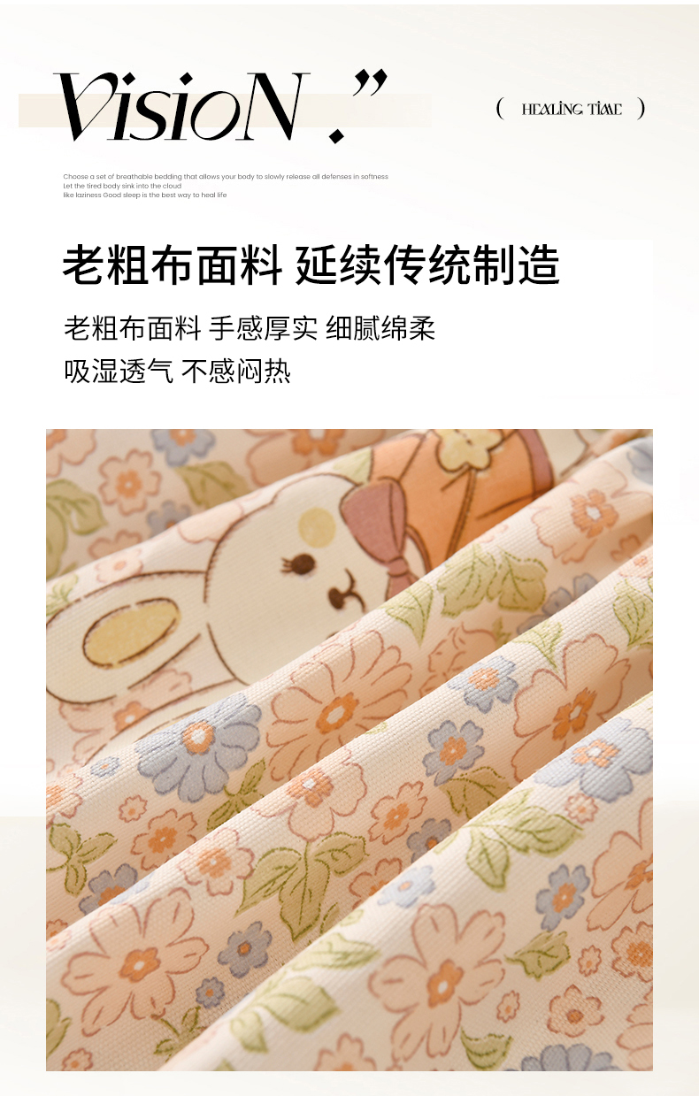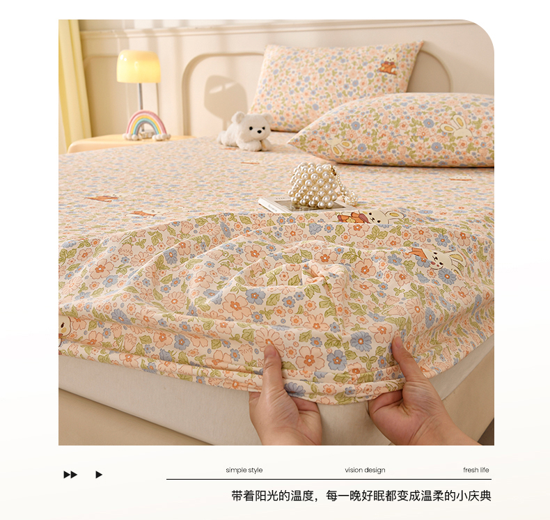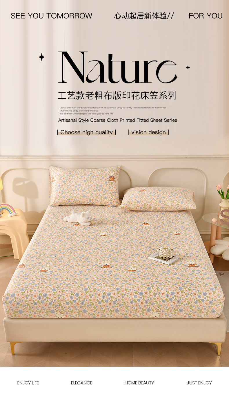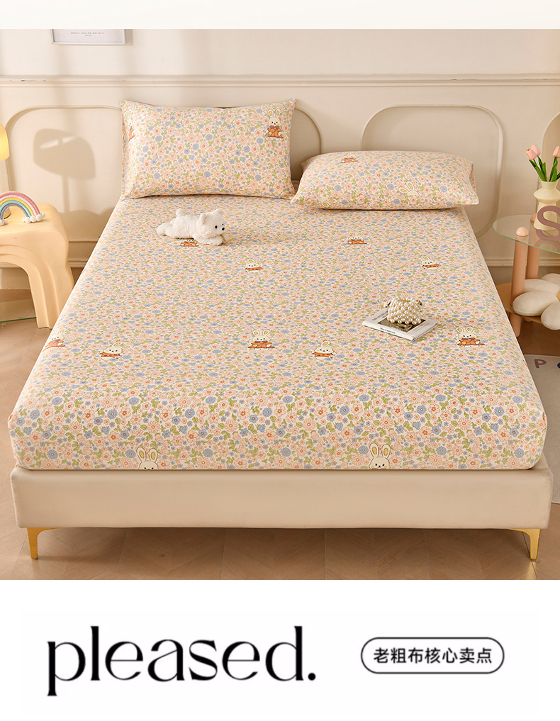 • 91家纺网 家纺一手货源 找家纺 悠米悠家 2026新款工艺款印花老粗布床笠单品床笠床笠单件凉席席子 春日兔游记