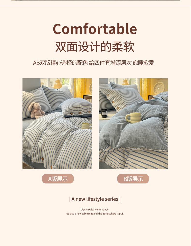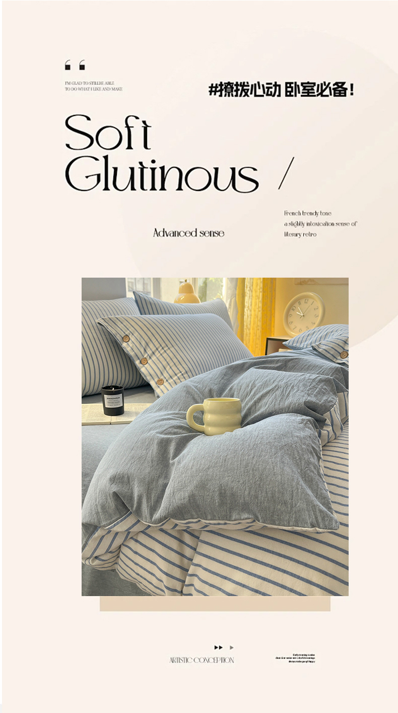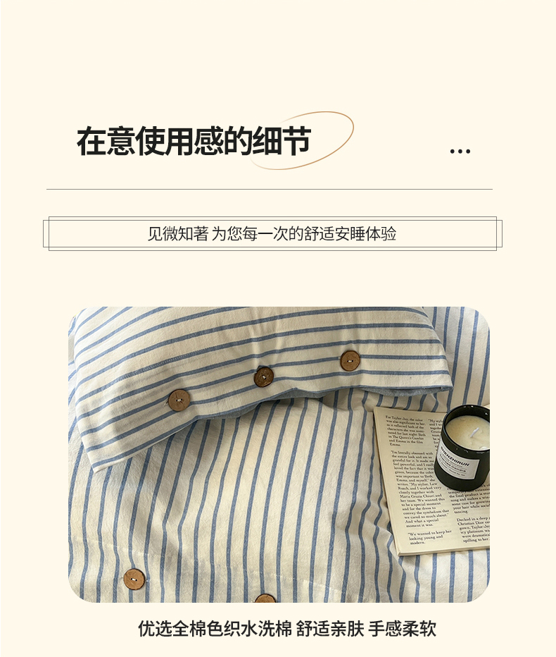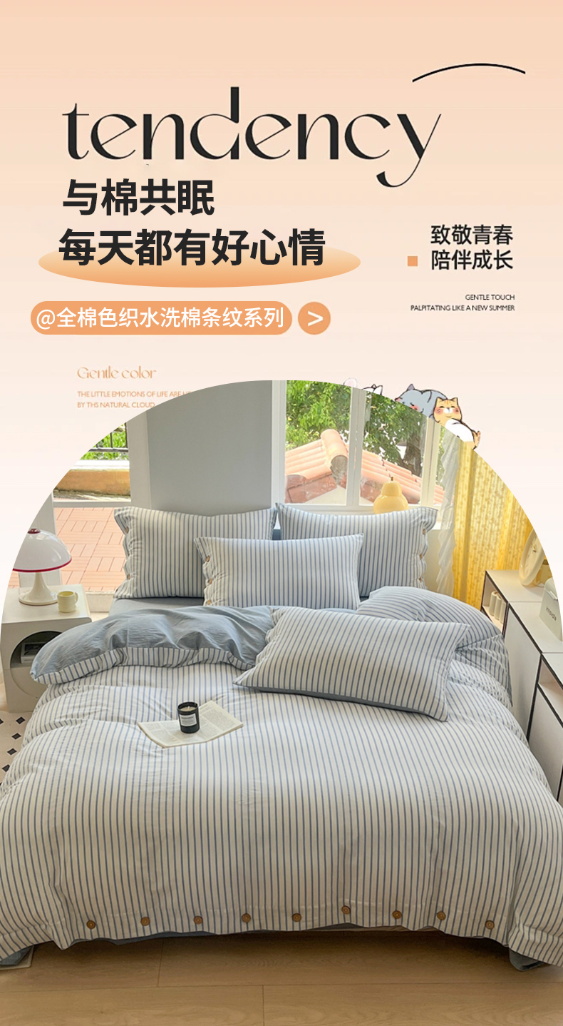 (总)梦依依 2025新款全棉色织水洗棉纽扣款四件套学生三件套全棉纯棉三件套,粉苏条,黑苏条,蓝苏条,绿苏条,米细条,黑细条,灰细条