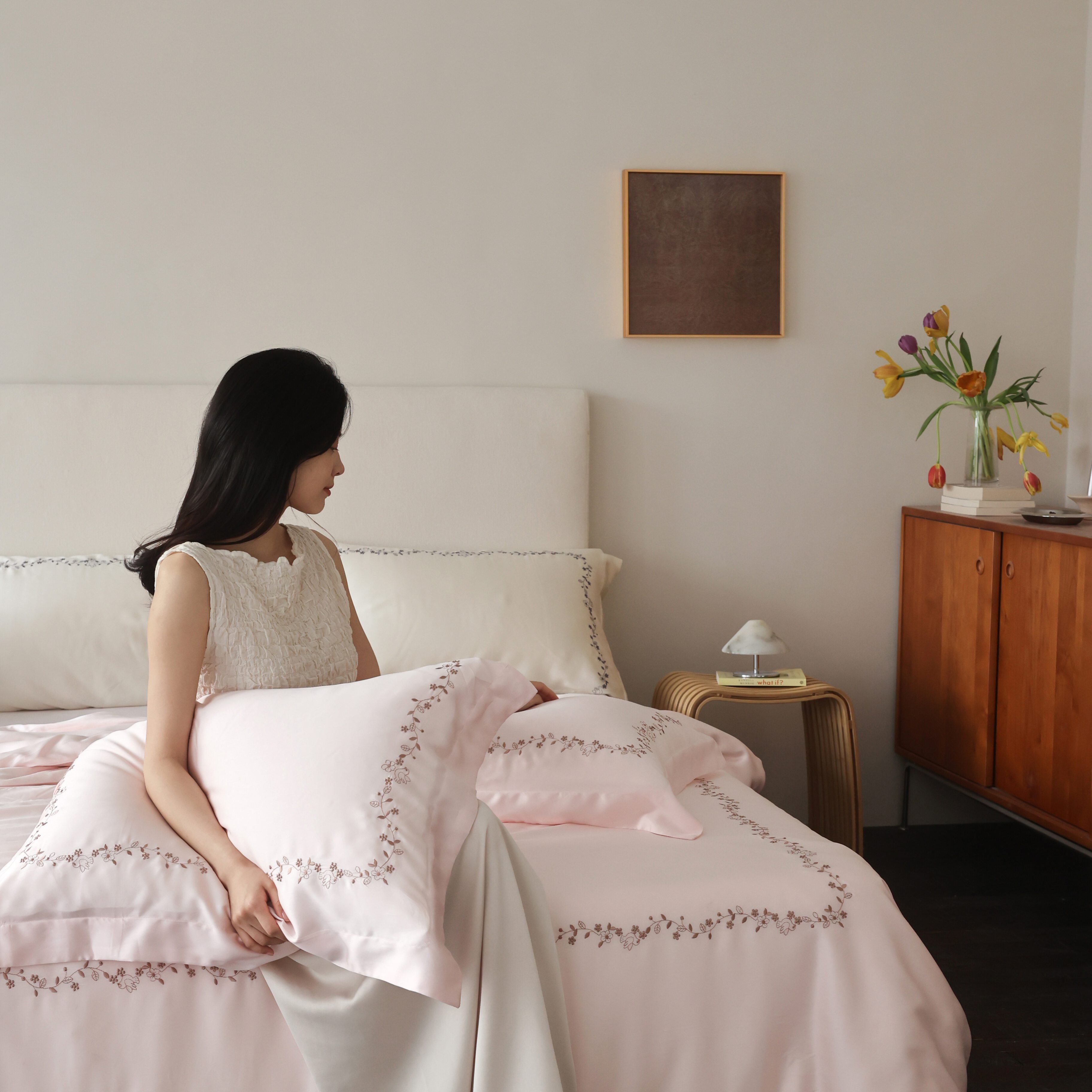 (总)初拾 2025新款全棉简约刺绣四件套-柏林,柏林-浅香槟,柏林-浅云蓝,柏林-雅灰粉