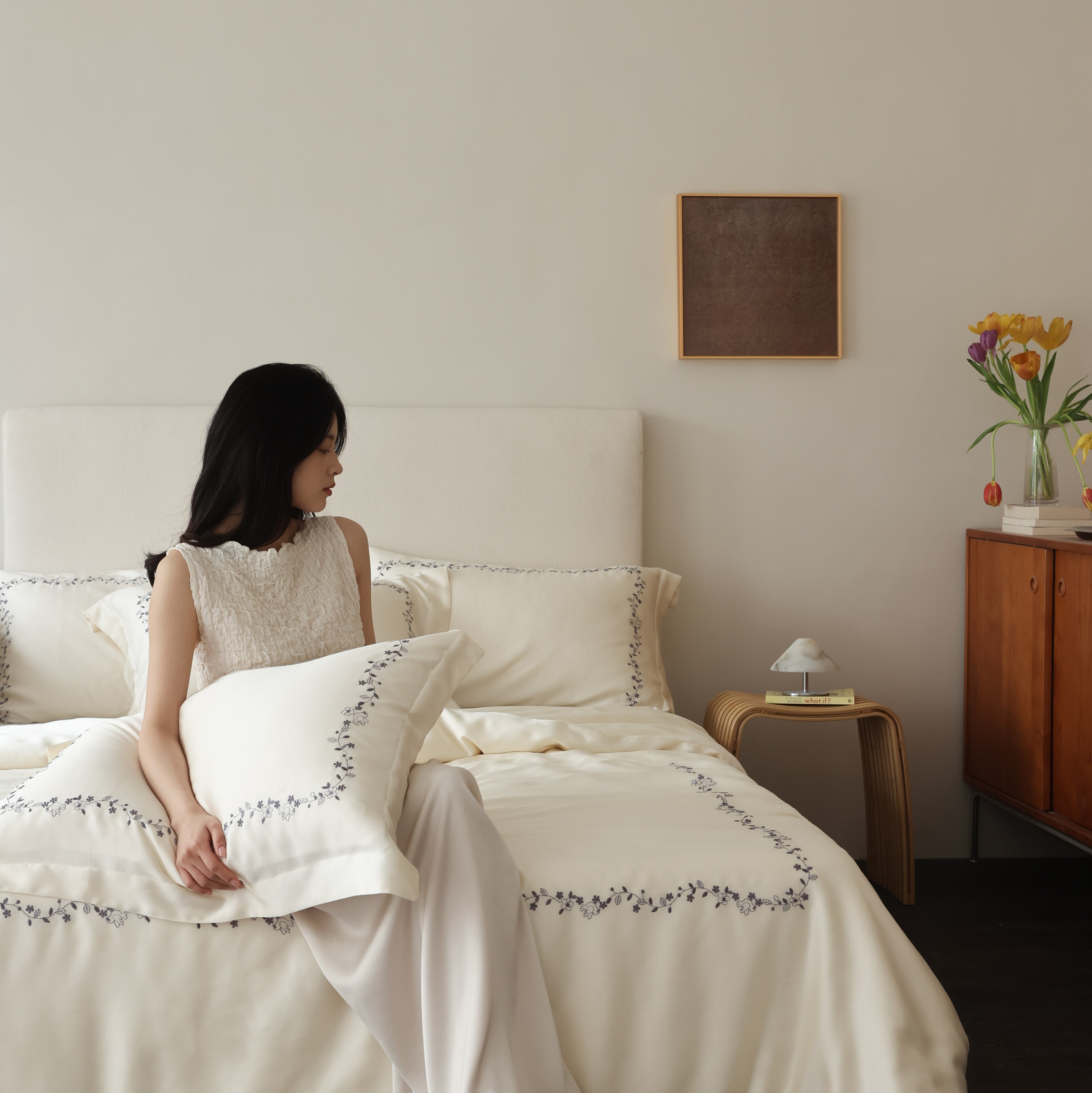 初拾 2026新款60支奥地利进口兰精天丝四件套—嘉丽斯 嘉丽斯-茉莉白