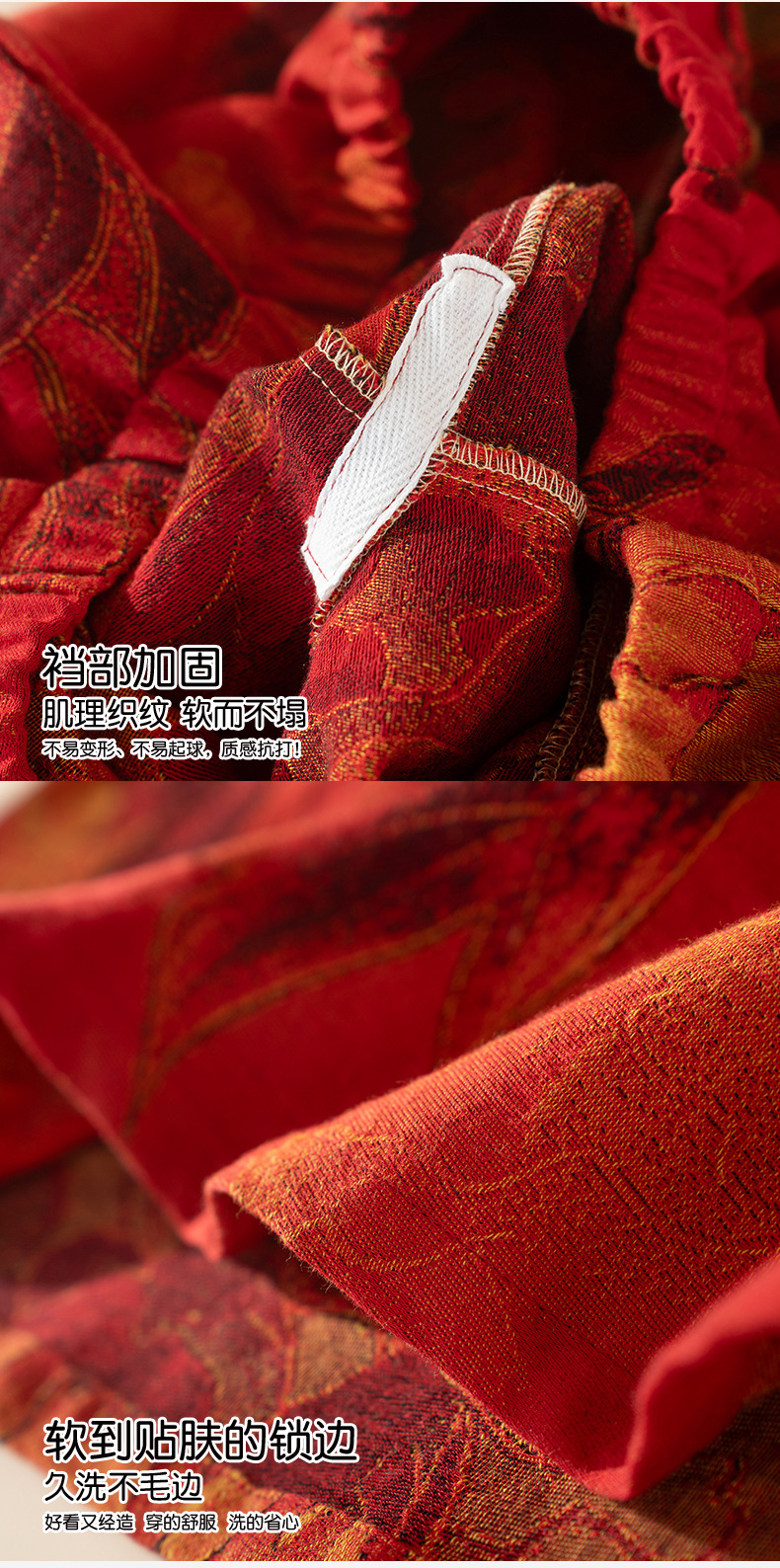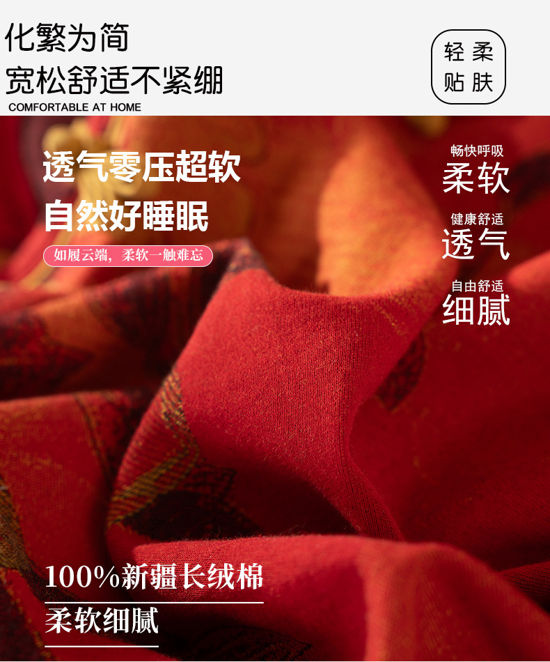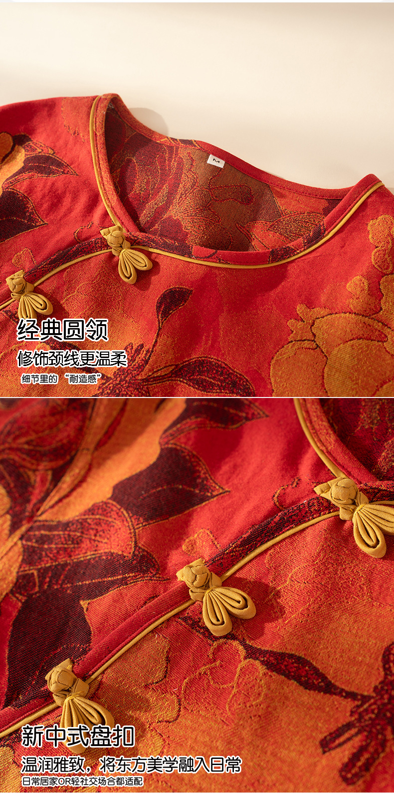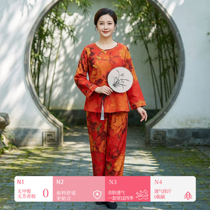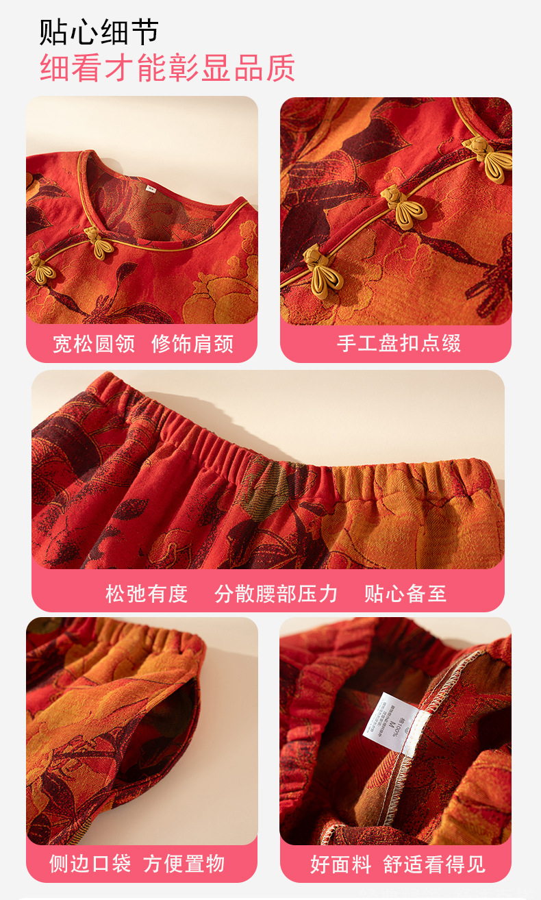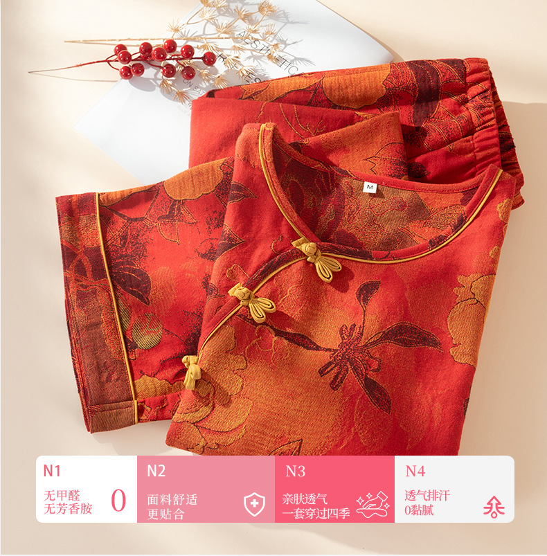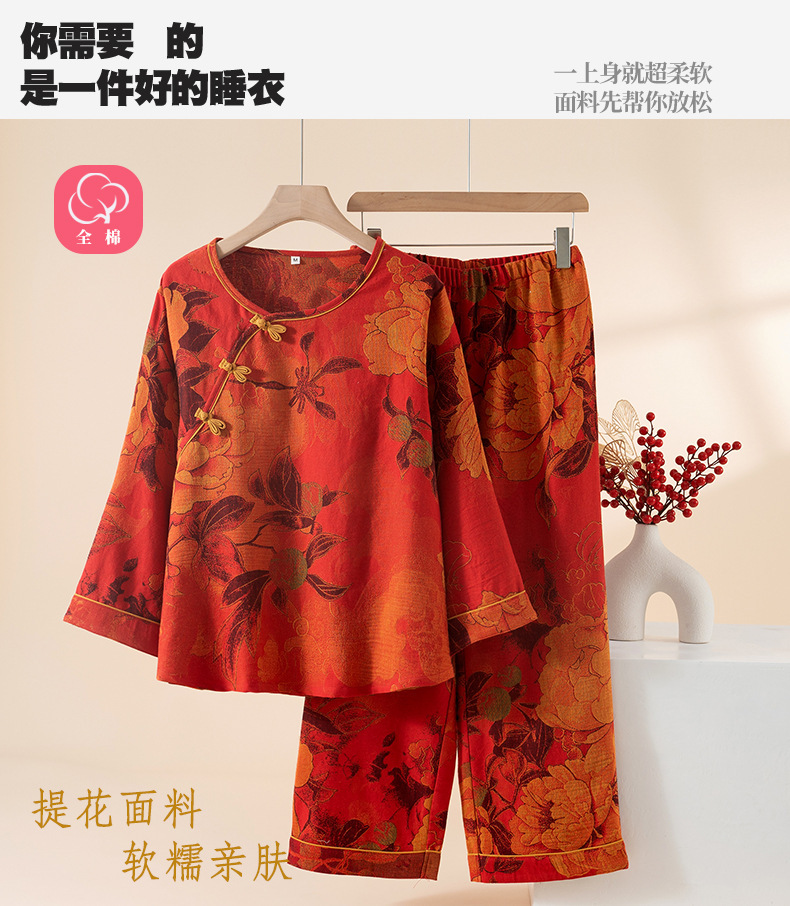 (总)洛兰沙家居馆 新款幸运红色睡衣女纯棉纱布国风家居服春夏九分袖居家服可外穿