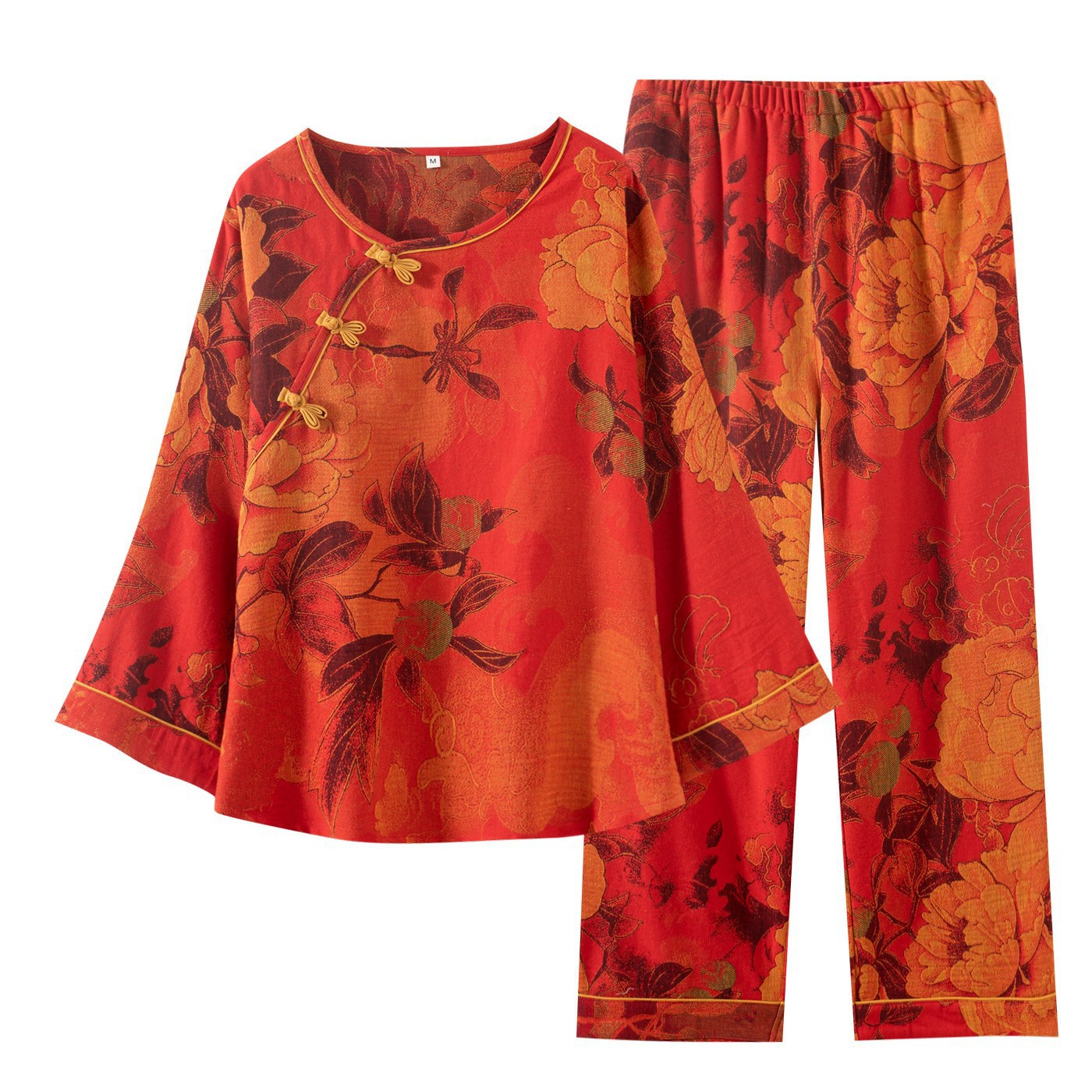 商品名称:(总)洛兰沙家居馆 新款幸运红色睡衣女纯棉纱布国风家居服春夏九分袖居家服可外穿