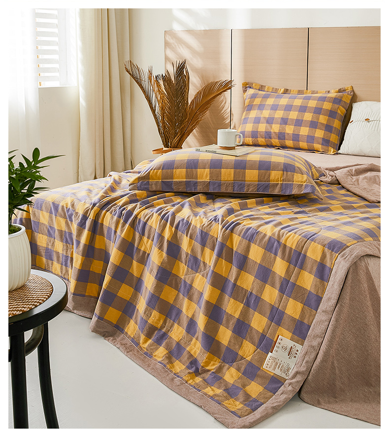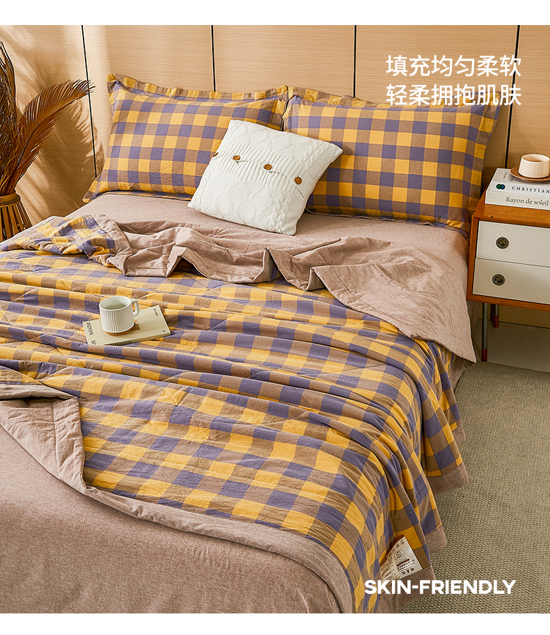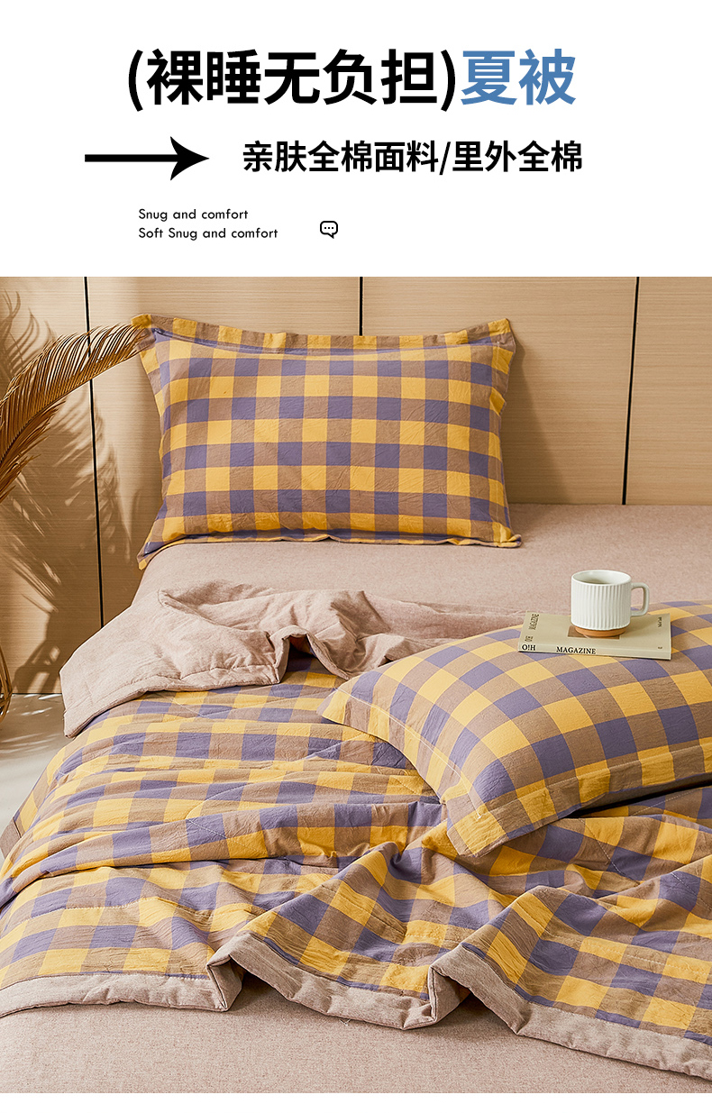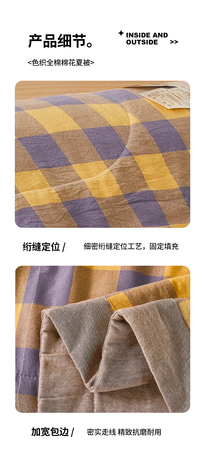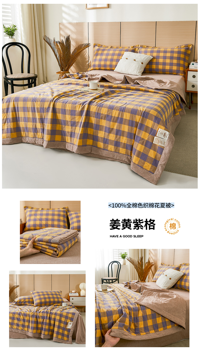 81号家纺 2026新款全棉纯棉色织棉花夏被夏凉被空调被 姜黄紫格