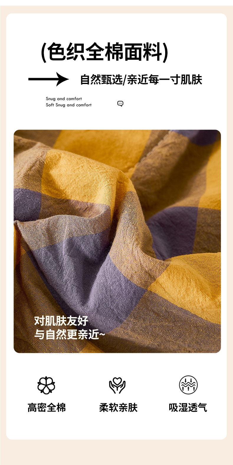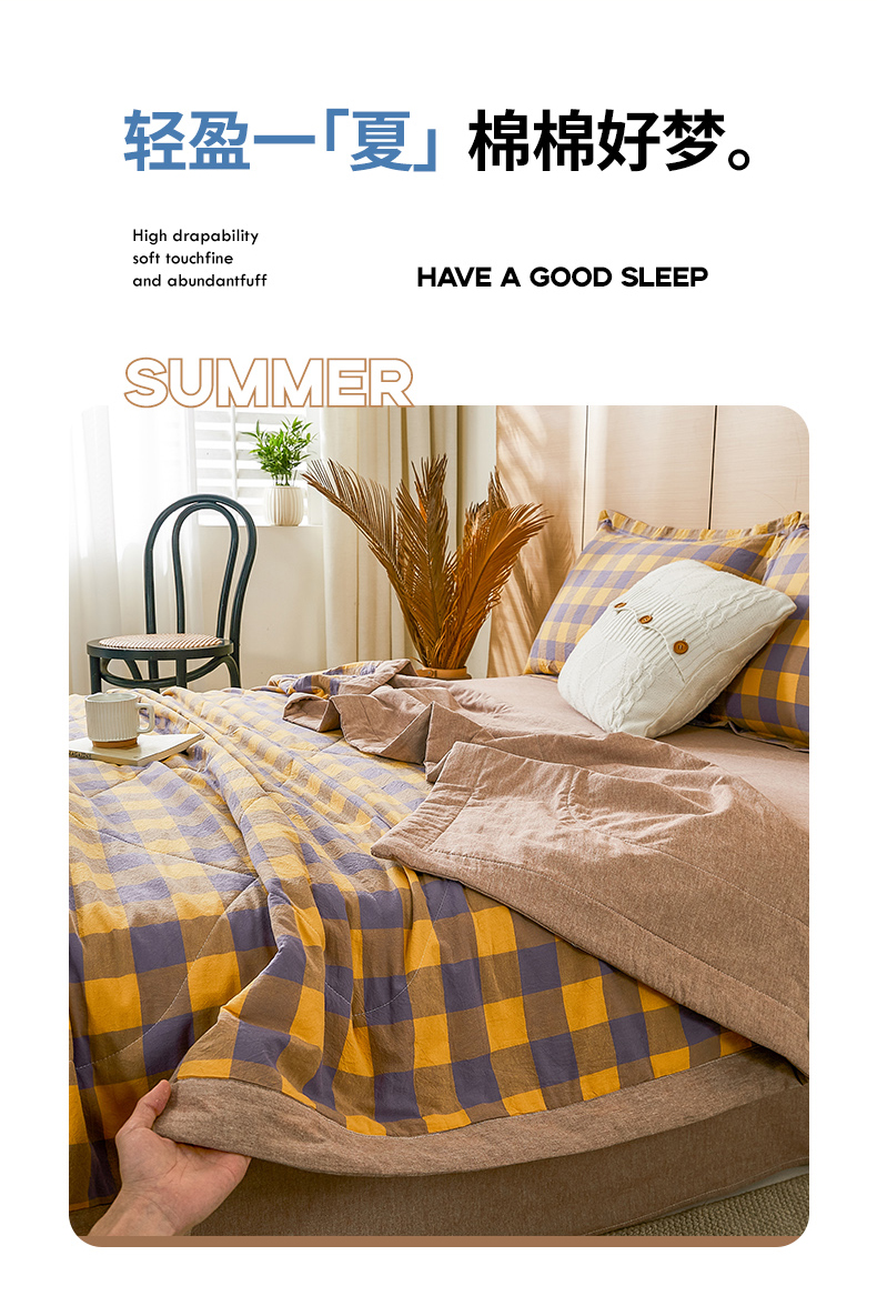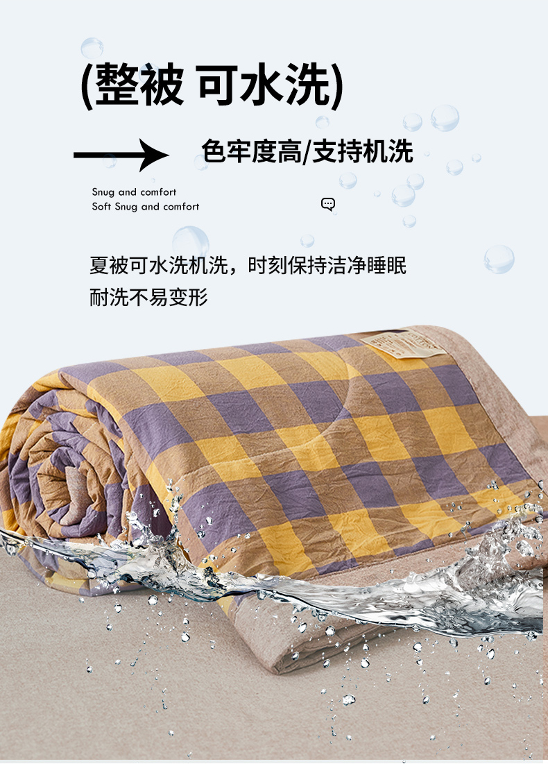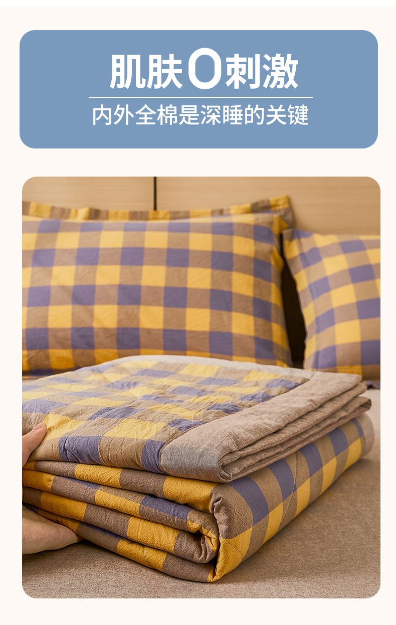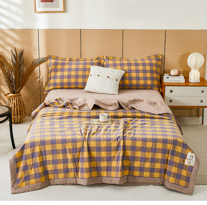81号家纺 2026新款全棉纯棉色织棉花夏被夏凉被空调被 姜黄紫格