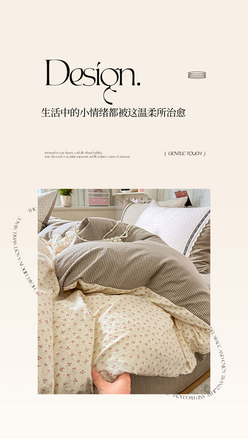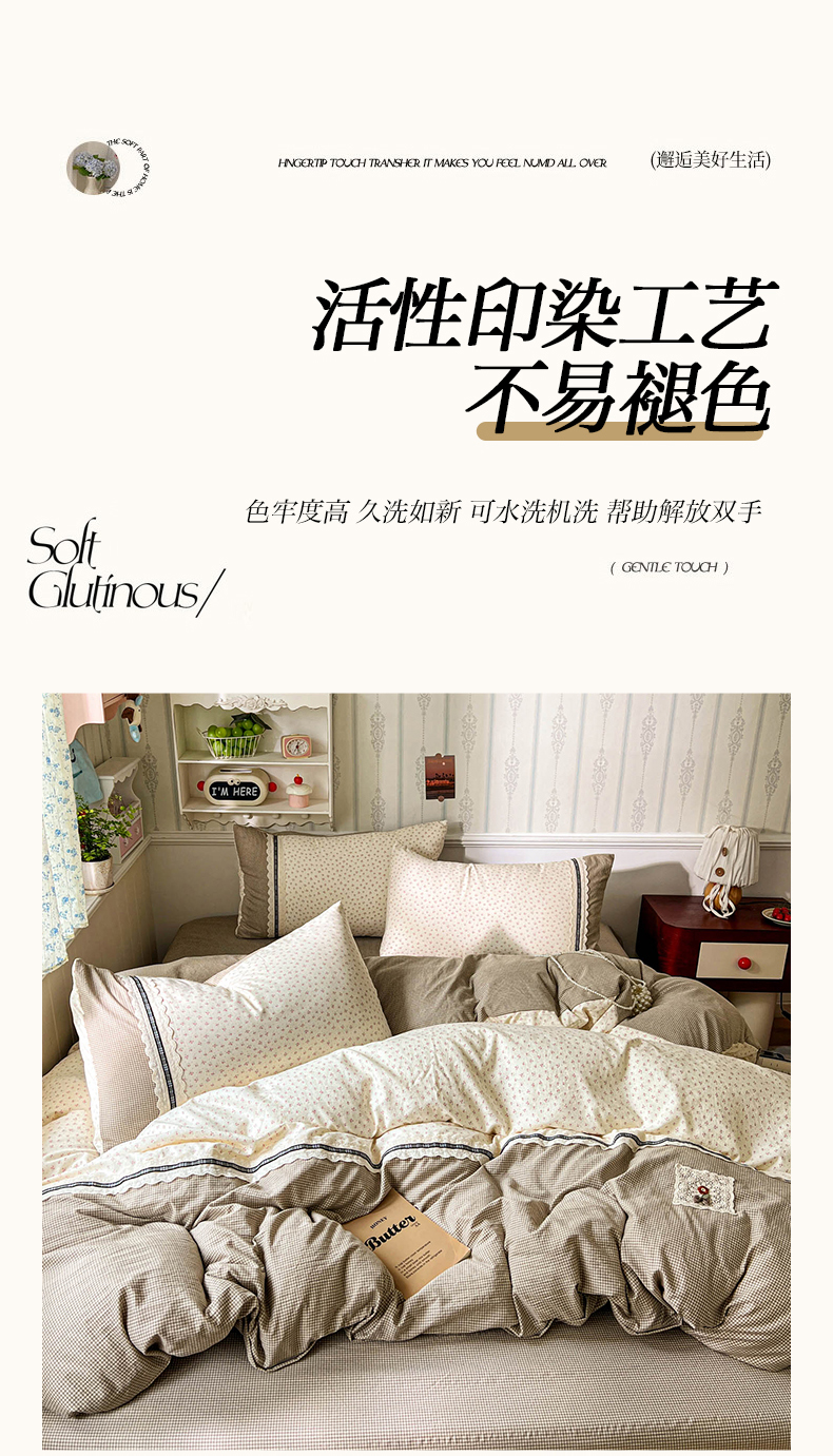 (总)韩秀家纺 2026新款A类仿棉四件套超柔古法棉水洗棉法式花边床笠四件套(提供买家秀)