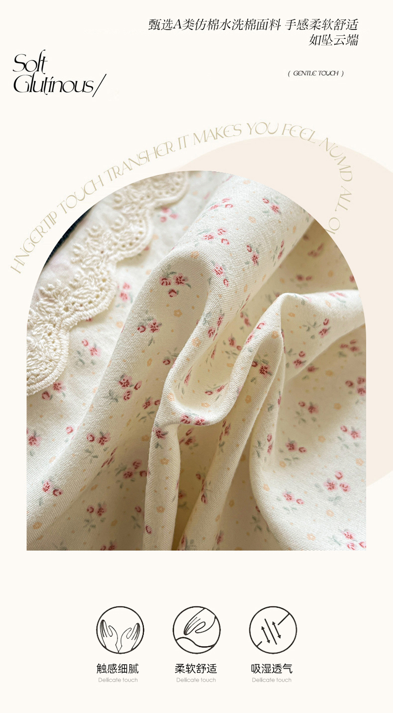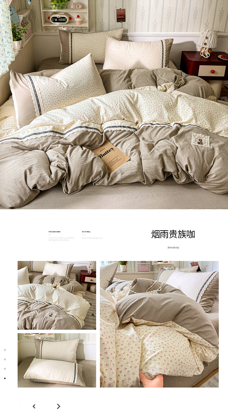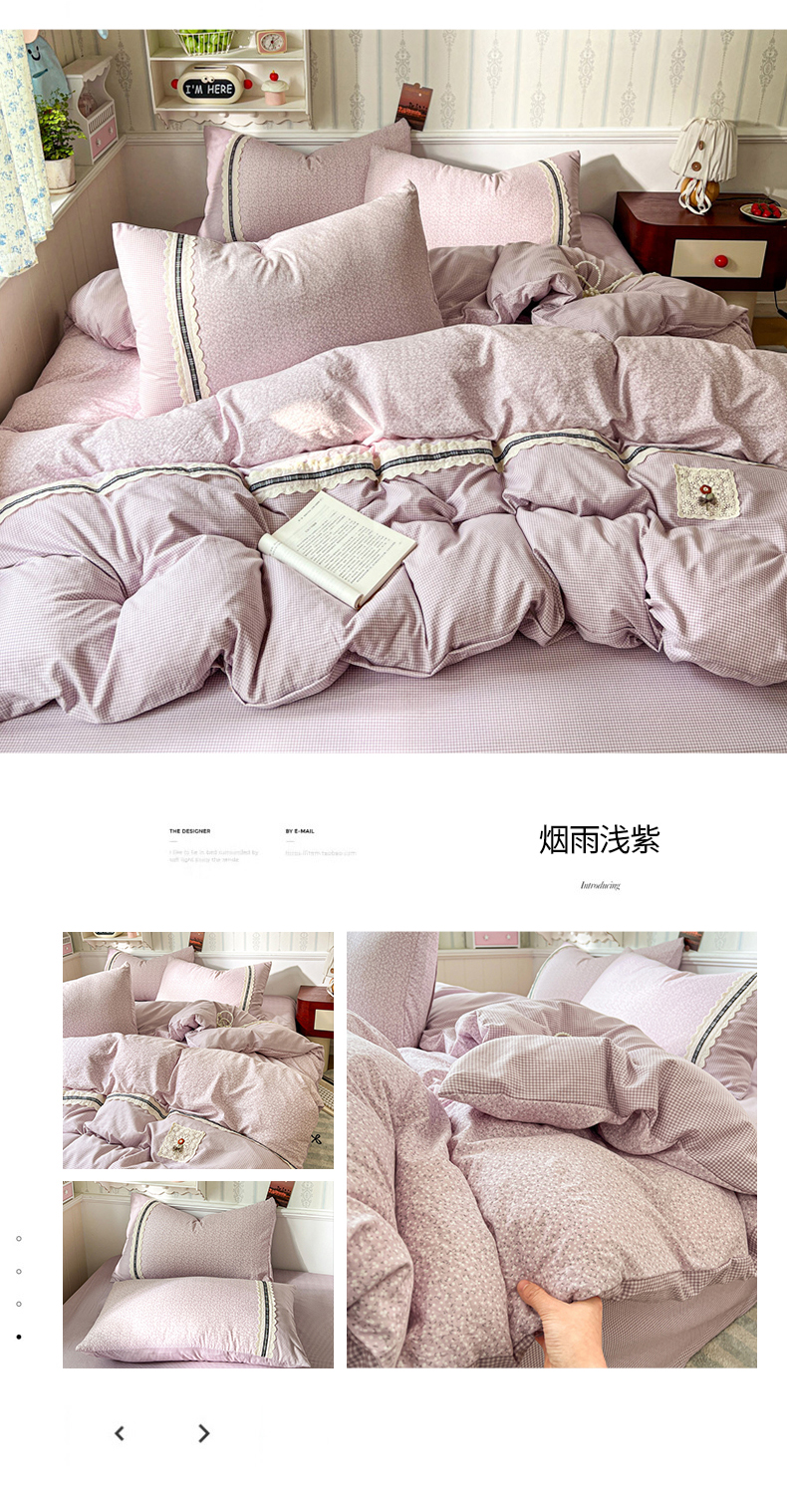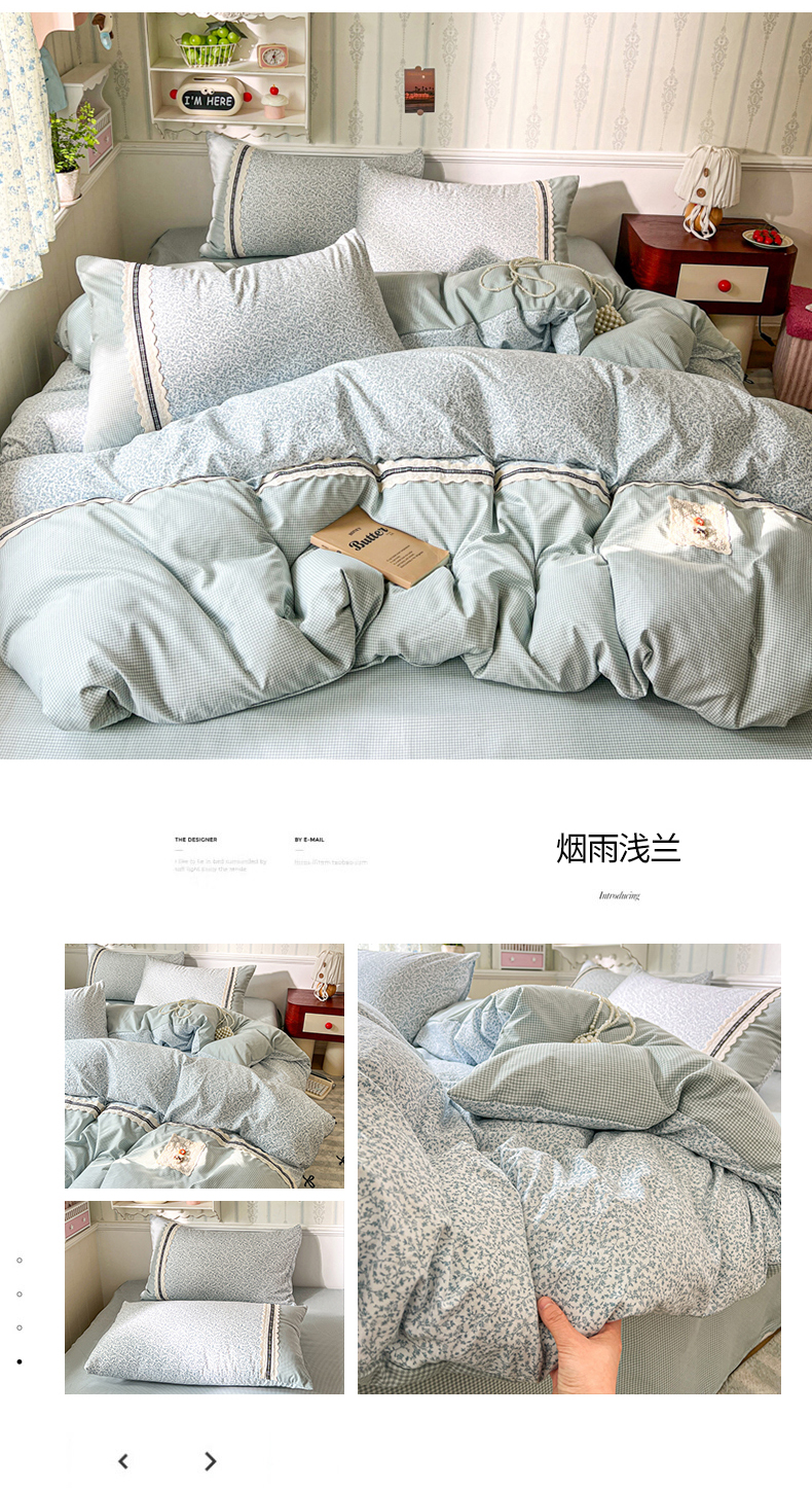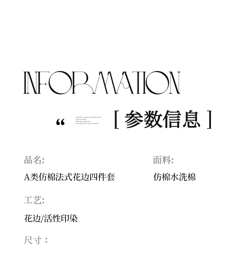商品名称:(总)韩秀家纺 2026新款A类仿棉四件套超柔古法棉水洗棉法式花边床笠四件套(提供买家秀)