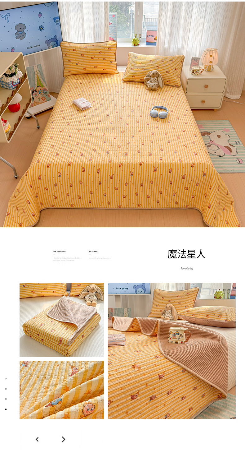 (总)雅萱家纺 2026新款森系全棉夹棉印花床盖,晨雾碎花,萌兔乐园,奶黄星星熊,雾蓝花境,星星猫,豹纹小狗,橙意满满,蛋糕熊仔,动物园,格纹萌犬,花丛小熊,简约时代,焦糖腊肠犬,咖啡小熊,洛克花园,墨兰樱桃,奶油兔叽,色块絮语,绅士狗,松鼠乐园,桃气修狗,兔彼得,夏日小黄花,仙草兔,心意满满,星星小象,樱桃小狗,郁金香狗