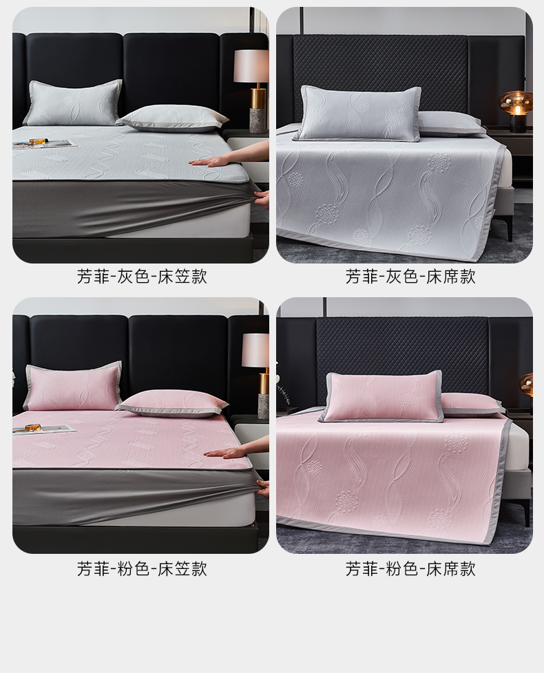 (总)库里梦家纺 2026新款轻奢高克重复合PE高分子凉席床笠三件套-芳菲,芳菲-粉色床席款,芳菲-灰色床席款,芳菲-蓝色床席款,芳菲-绿色床席款,芳菲-粉色床笠款,芳菲-灰色床笠款,芳菲-蓝色床笠款,芳菲-绿色床笠款