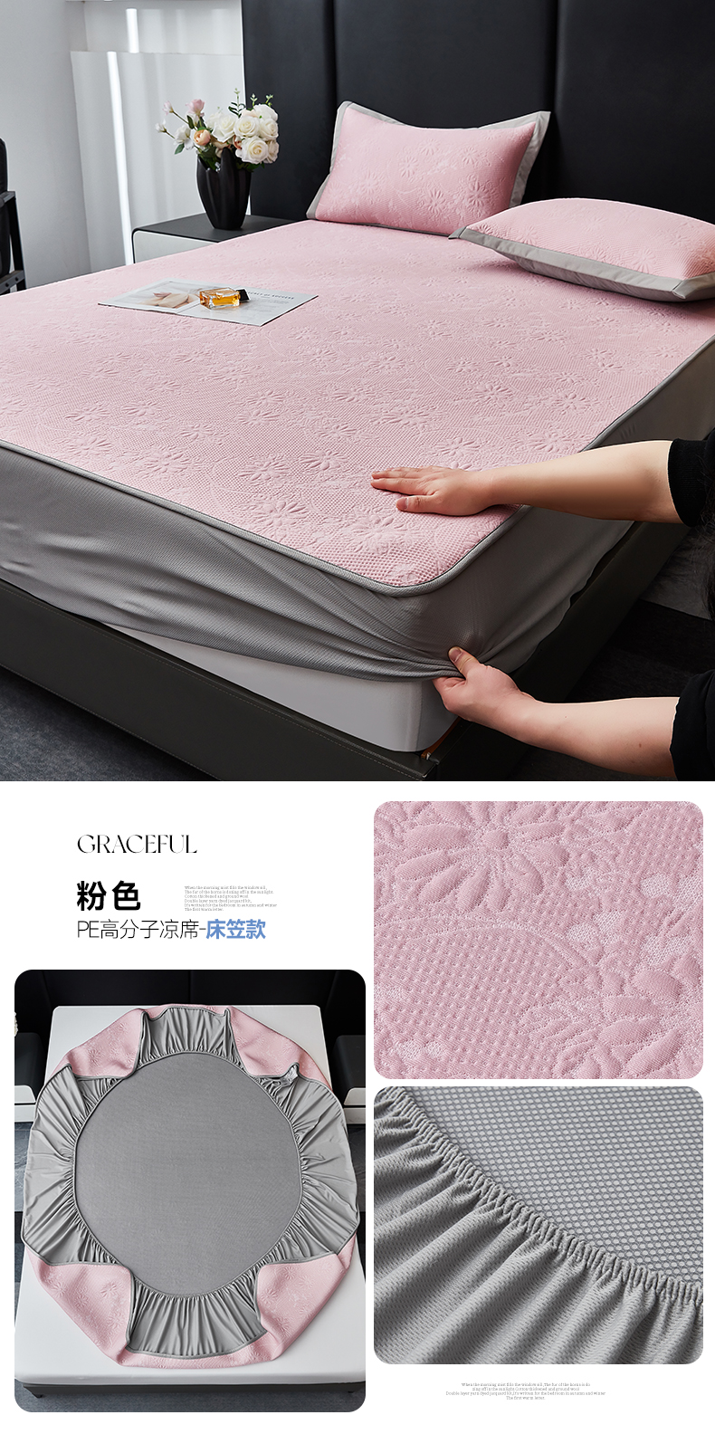 (总)库里梦家纺 2026新款轻奢高克重复合PE高分子凉席床笠三件套-芳菲,芳菲-粉色床席款,芳菲-灰色床席款,芳菲-蓝色床席款,芳菲-绿色床席款,芳菲-粉色床笠款,芳菲-灰色床笠款,芳菲-蓝色床笠款,芳菲-绿色床笠款