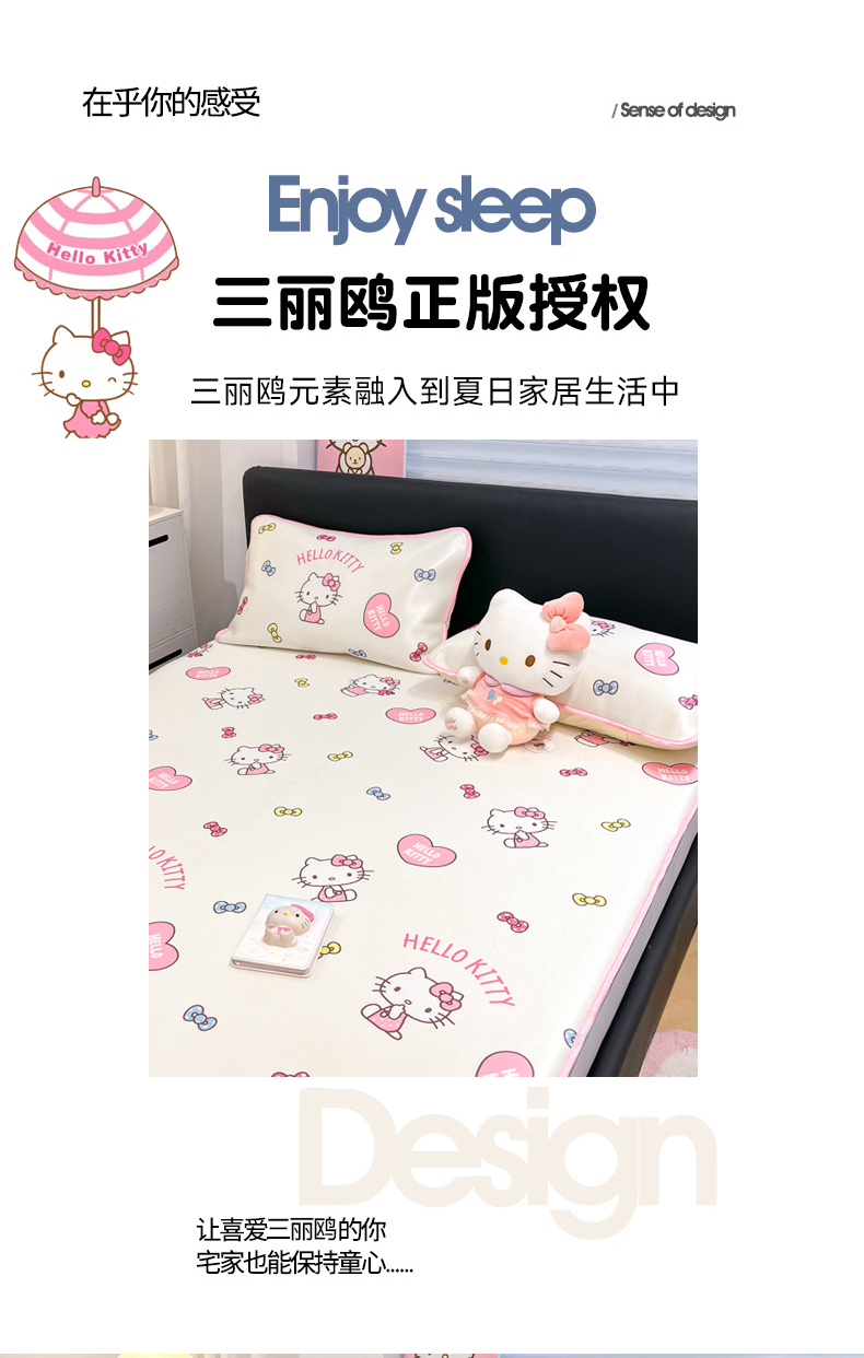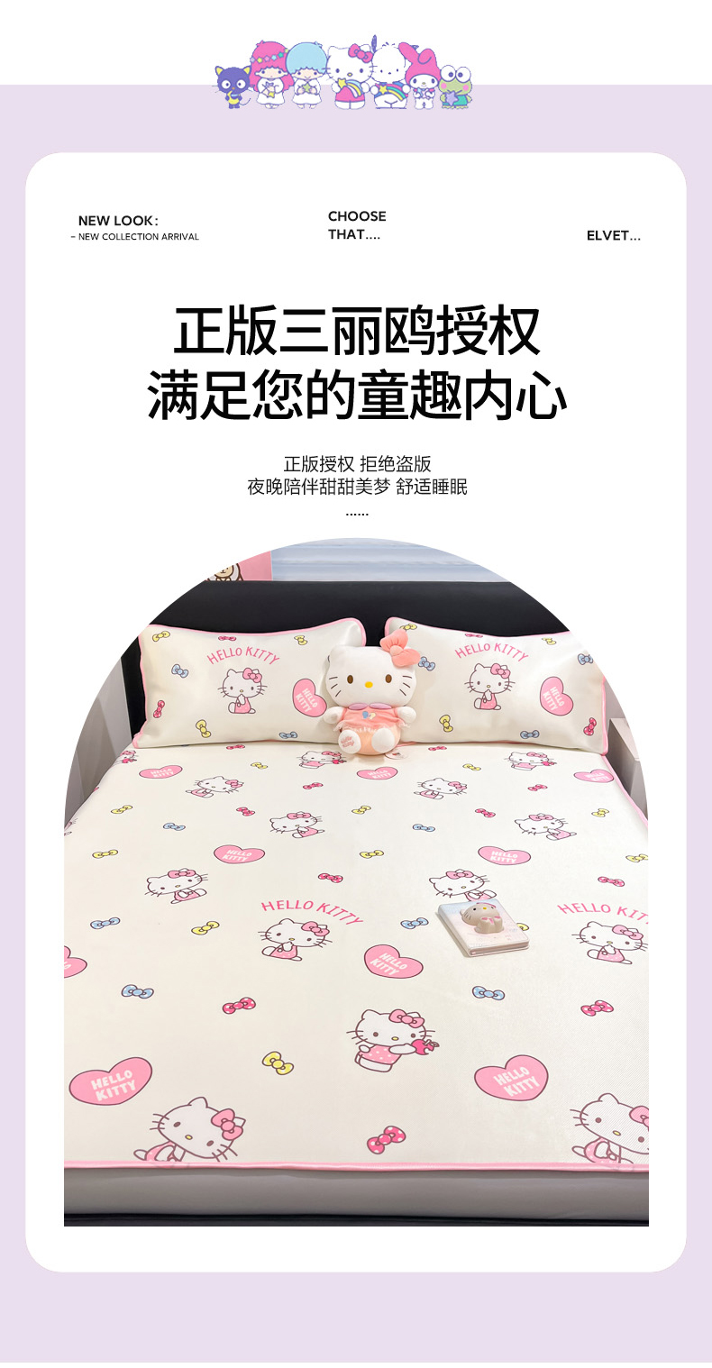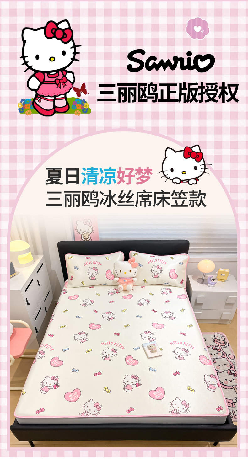 当前位置: 91家纺网 > 商品网购 > 床上用品 > 凉席 > 凉席套件 > 暮思家居 2026新款三丽鸥正版授权数码印花A类可机洗1200D冰丝凉席三件套床笠款系列 床笠款-公主KT