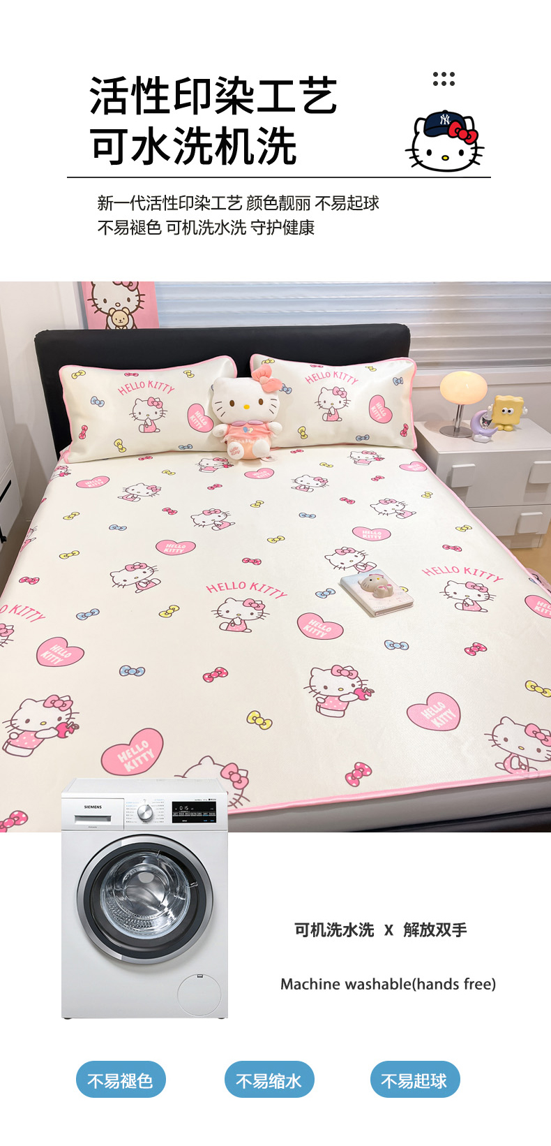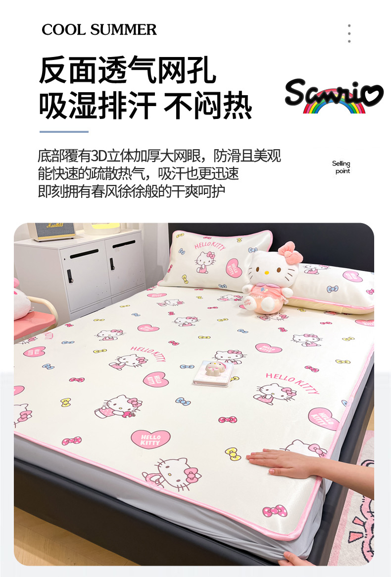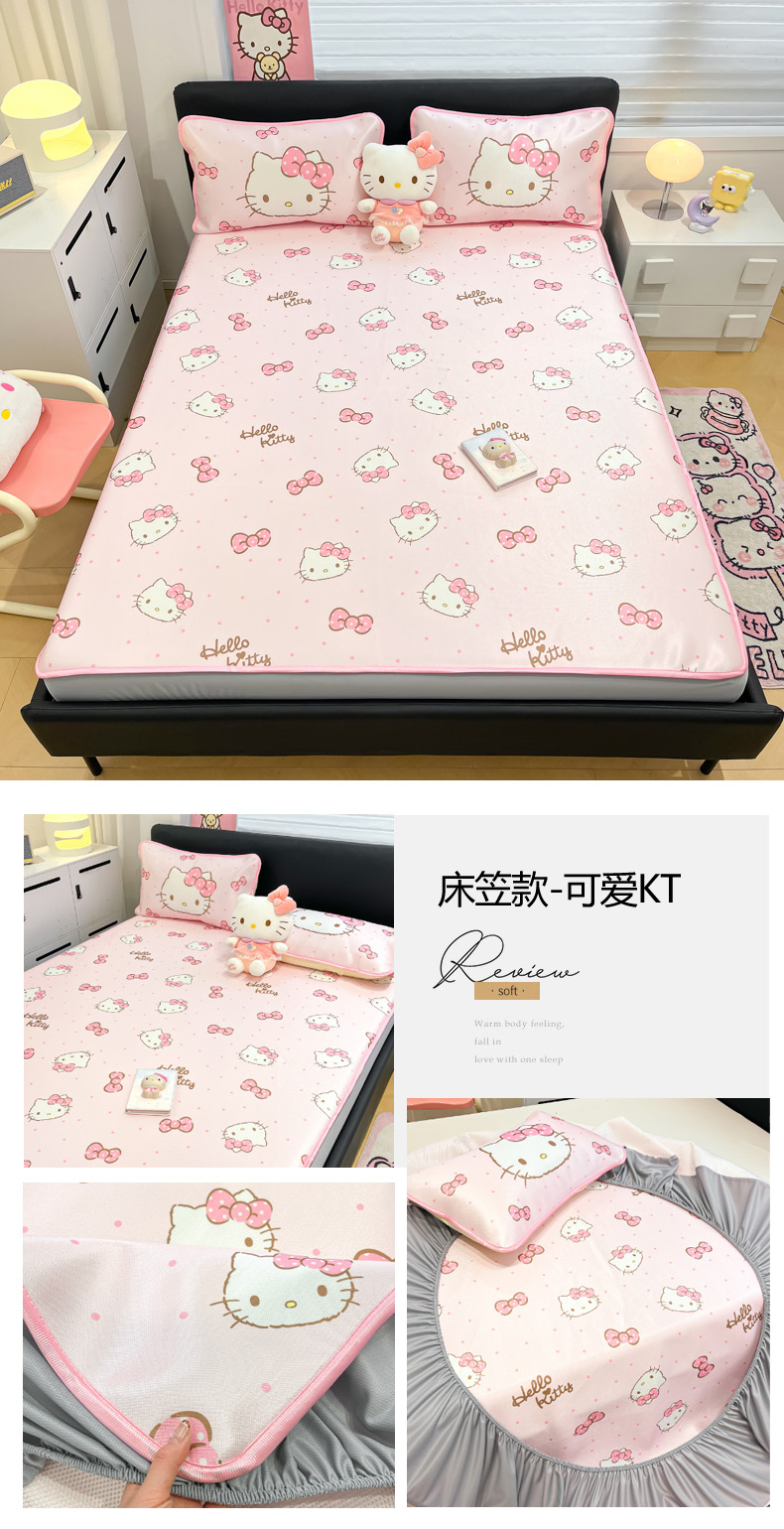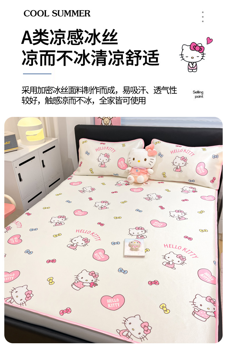 当前位置: 91家纺网 > 商品网购 > 床上用品 > 凉席 > 凉席套件 > 暮思家居 2026新款三丽鸥正版授权数码印花A类可机洗1200D冰丝凉席三件套床笠款系列 床笠款-公主KT