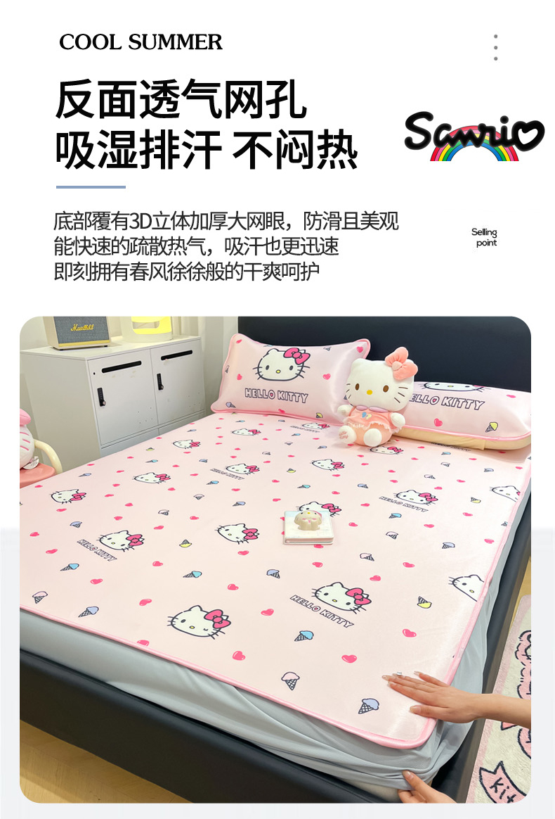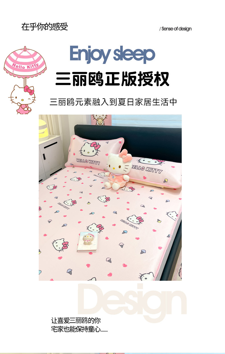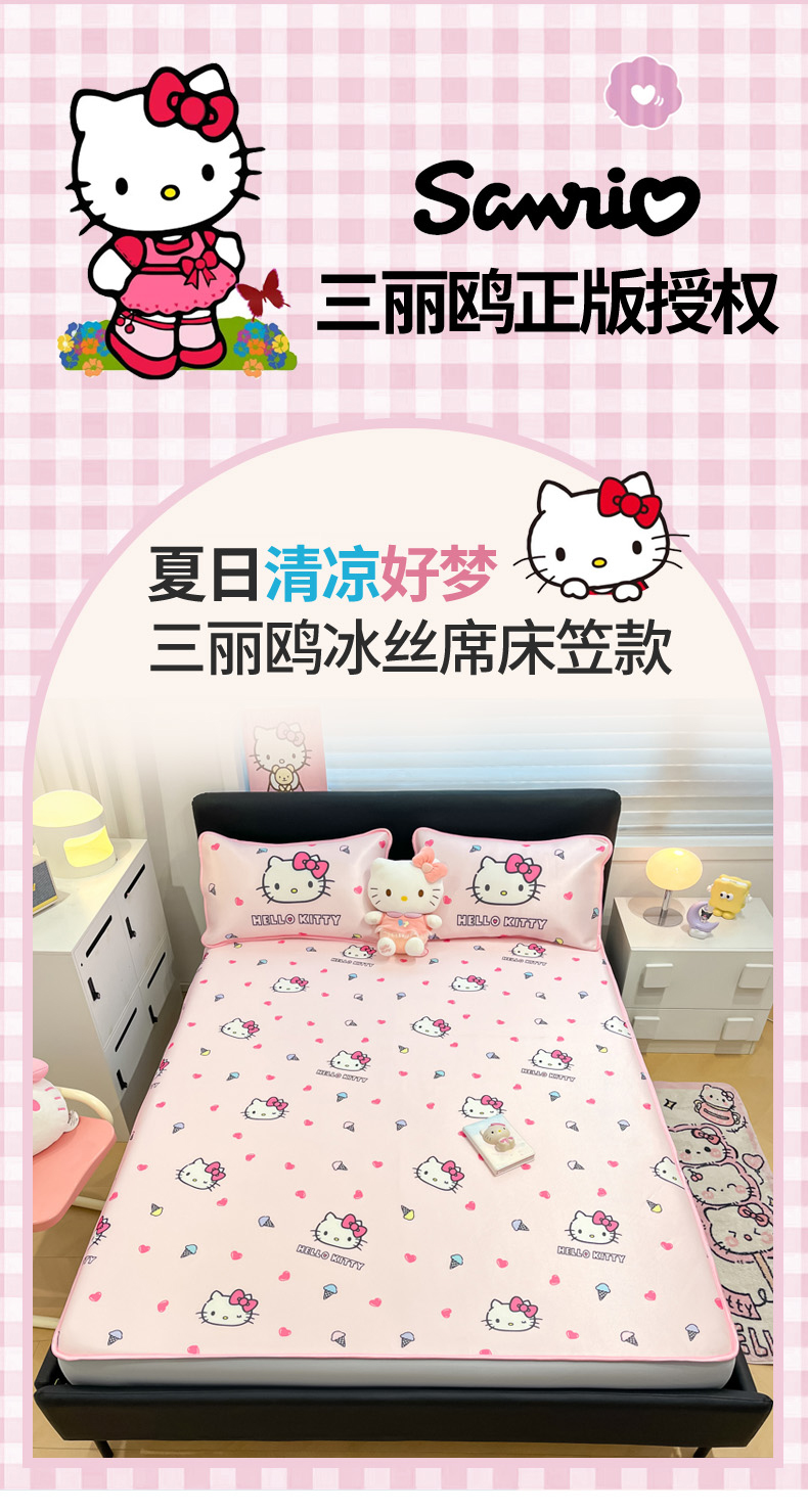 当前位置: 91家纺网 > 商品网购 > 床上用品 > 凉席 > 凉席套件 > 暮思家居 2026新款三丽鸥正版授权数码印花A类可机洗1200D冰丝凉席三件套床笠款系列 床笠款-甜筒KT