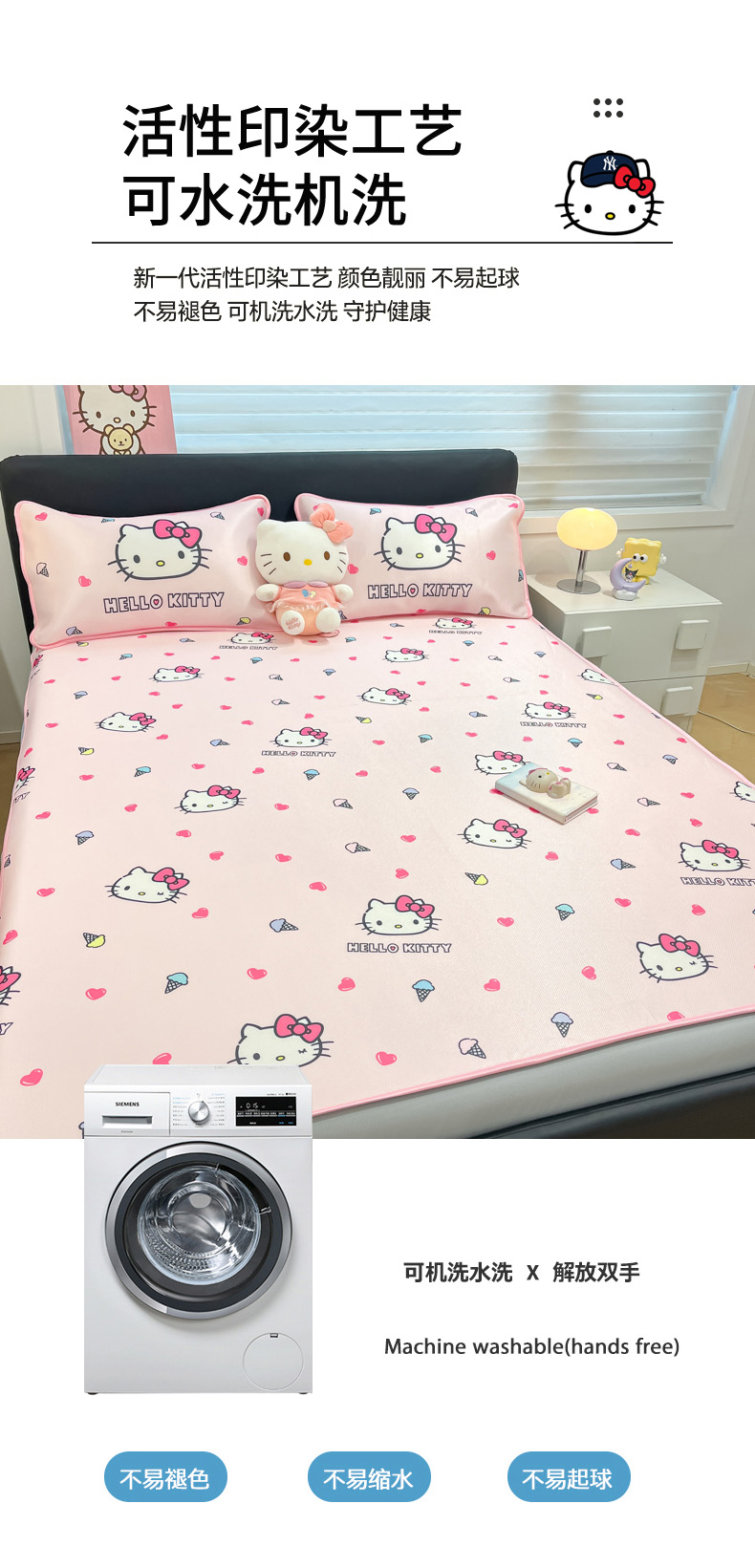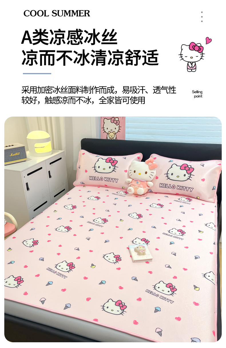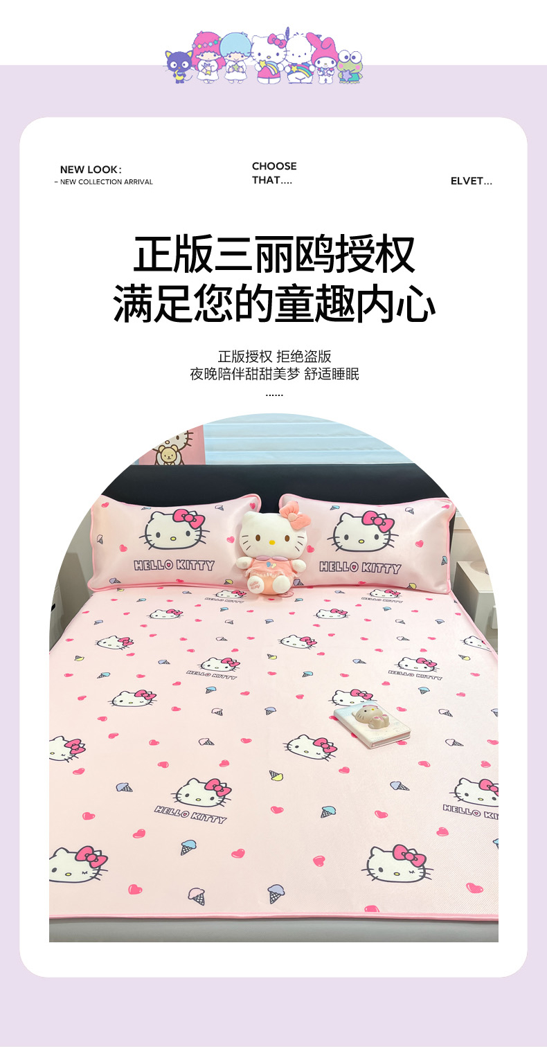 当前位置: 91家纺网 > 商品网购 > 床上用品 > 凉席 > 凉席套件 > 暮思家居 2026新款三丽鸥正版授权数码印花A类可机洗1200D冰丝凉席三件套床笠款系列 床笠款-甜筒KT