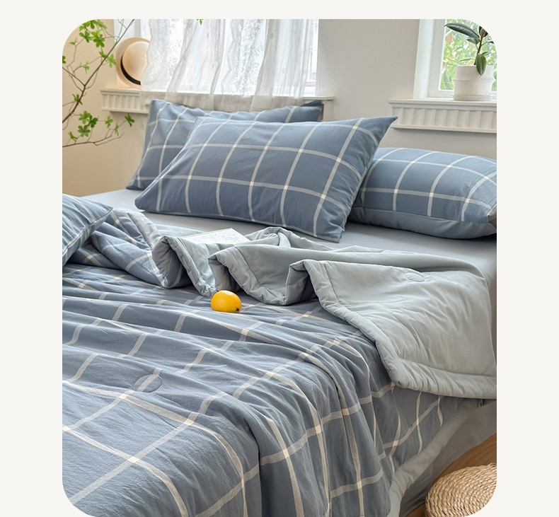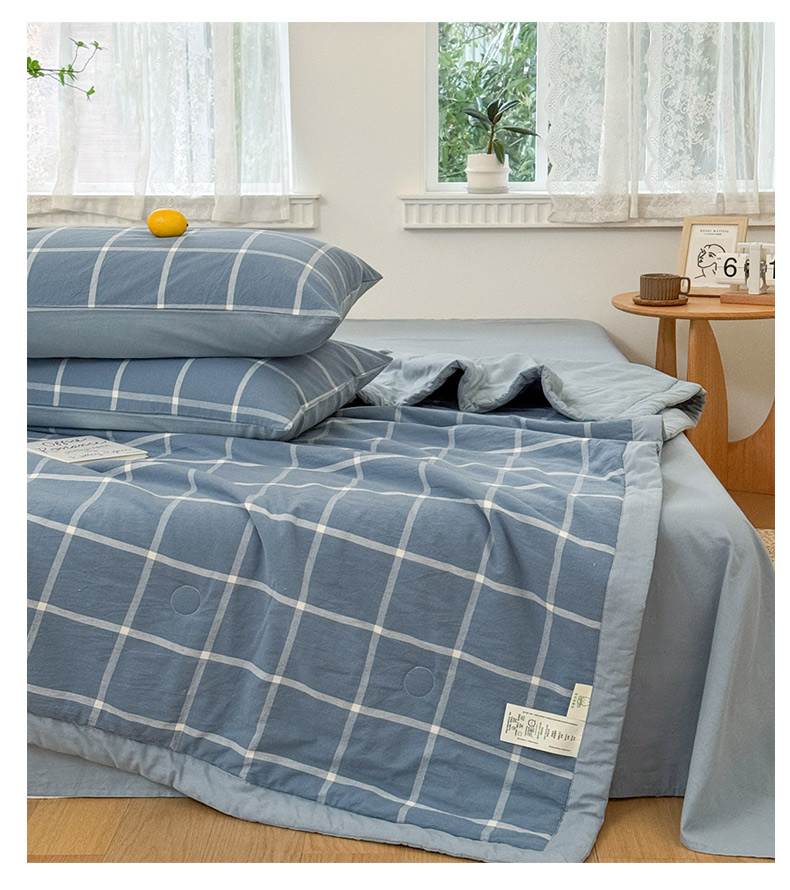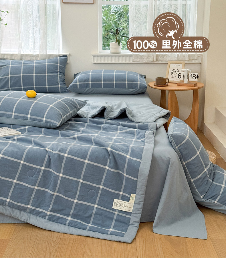 当前位置: 91家纺网 > 商品网购 > 被子 > 夏被 > 雯雨家纺 2026新款A类全棉色织里外全棉夏被 海蓝大格
