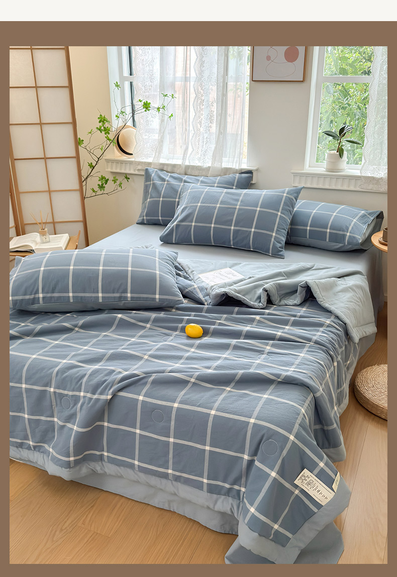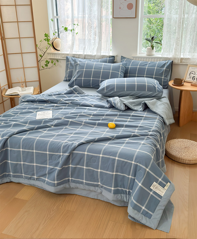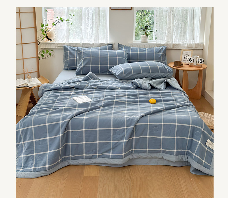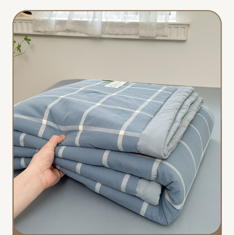 • 91家纺网 家纺一手货源 找家纺 雯雨家纺 2026新款A类全棉色织里外全棉夏被 海蓝大格