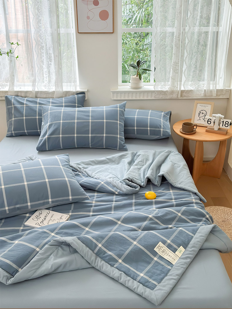 雯雨家纺 2026新款A类全棉色织里外全棉夏被 海蓝大格
