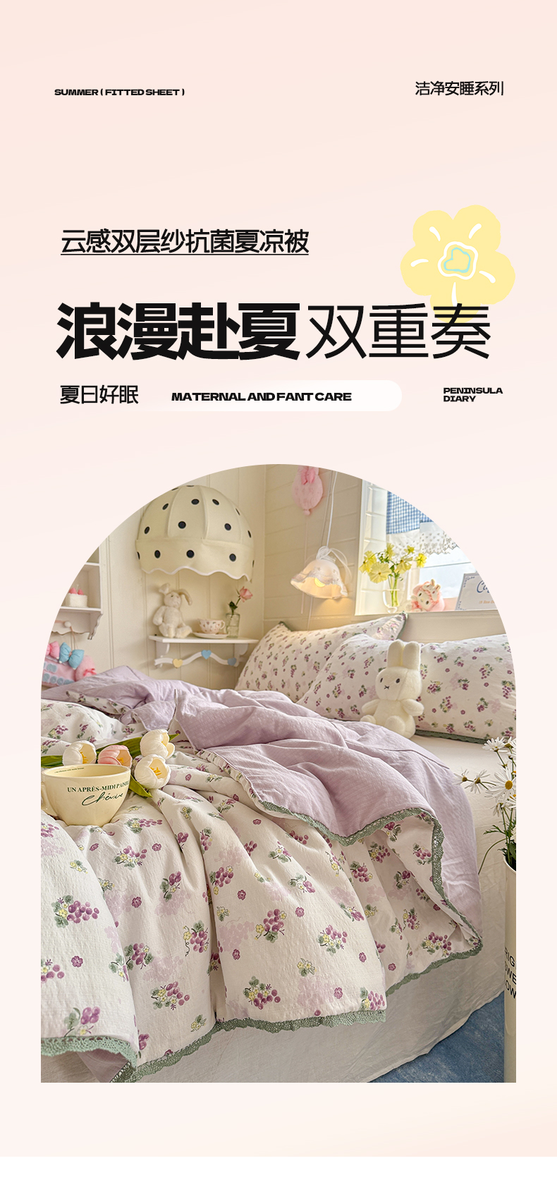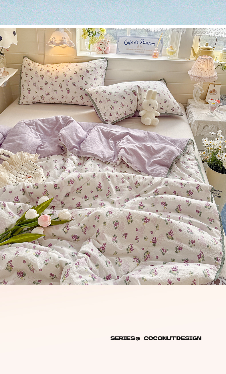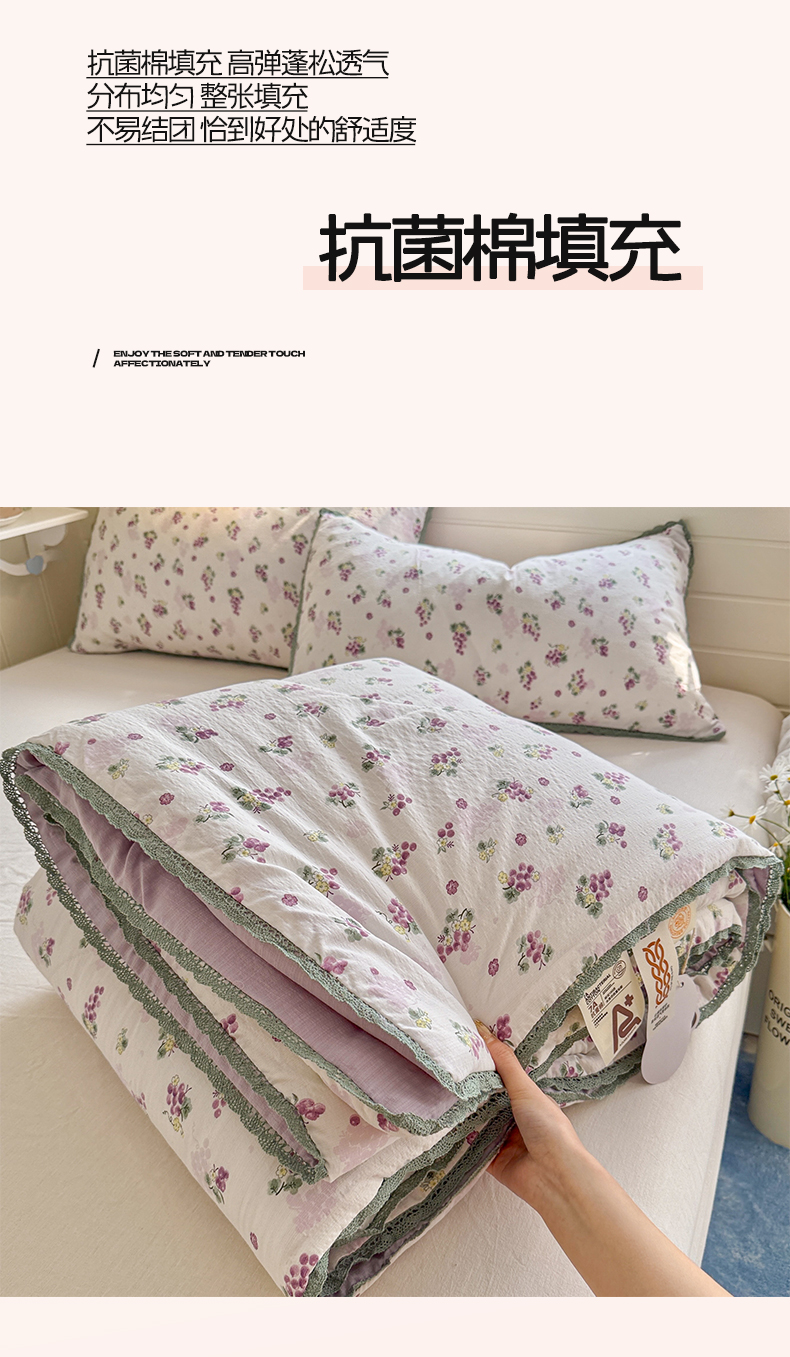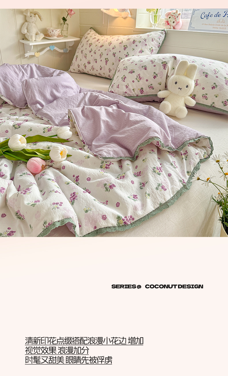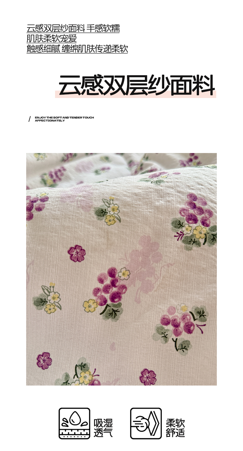 商品名称:优承佳生活馆 2026新款云感双层纱抗菌夏被夏凉被空调被 粉紫绮梦