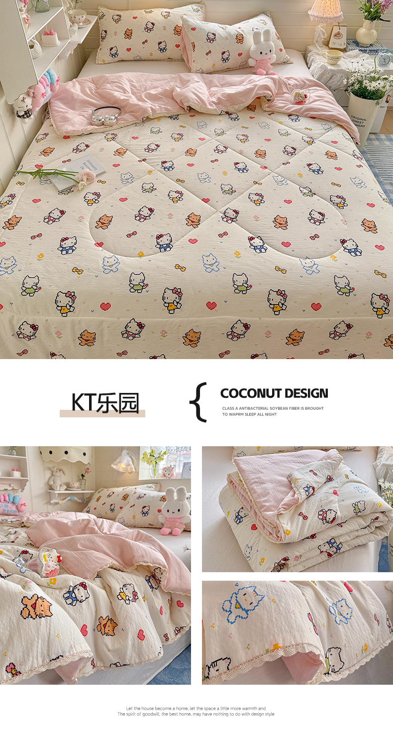 (总)优承佳生活馆 2026年新款卡通小清新风格高克重超柔软糯泡芙双层纱面料三件套四件套单被套系列,hello粉凯蒂,芭比兔,春日木马,花间兔语,咖色凯蒂,满满,萌萌狗,女孩日常,千禧马,浅陌,甜猫派对,甜心,甜心草莓兔,童趣星空,星星kt,紫蔷薇