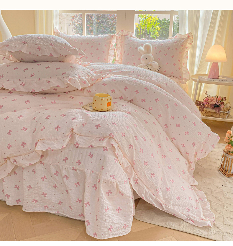 (总)昊川家纺 2026新款奶芙双层纱皱皱纱小清新多功能韩版花边床盖四件套,爱心气球-蓝,草莓日记,春日来信,好朋友-奶杏,蝴蝶结-樱花粉,花漾-紫,桔园晚香,可爱星人,倾心-杏粉,温柔兔-蓝,小天鹅-浅粉,小天鹅-浅黄,心动,胭脂
