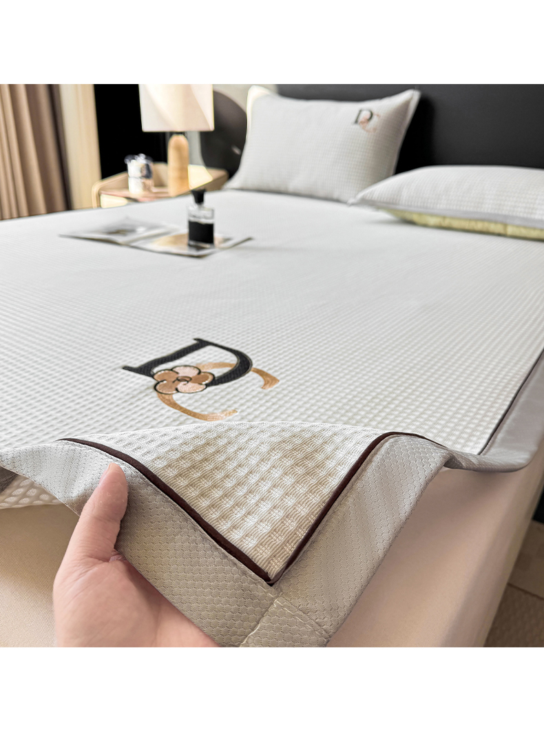 • 91家纺网 家纺一手货源 找家纺 (总)眠势力 2026新款冰豆豆凉席刺绣款凉席子冰感豆豆床单软凉席三件套可机洗,山茶DC-粉,山茶DC-灰,山茶DC-兰,山茶DC-绿,山茶DC-米,雅致-粉,雅致-灰,雅致-兰,雅致-绿,雅致-米
