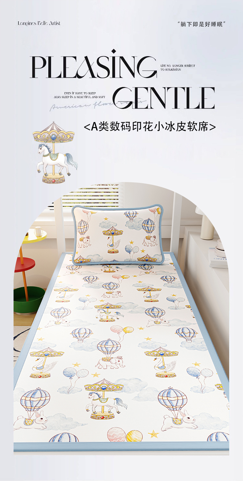 (总)奇丝雅 2026A类数码印花大版卡通冰丝凉席家用双人冰丝席可机洗单人学生宿舍夏天空调软席,萌象木马【三明治网底】,萌宝小火车【三明治网底】,精灵小兔【三明治网底】,呆萌恐龙【三明治网底】,月亮熊【三明治网底】,满天星辰【三明治网底】,海豚奇遇【三明治网底】,动物乐园【三明治网底】,星际漫游【三明治网底】,蘑菇城堡【三明治网底】