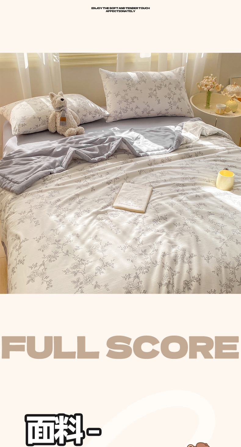 (总)憨豆家纺 2026春夏新款古法仿棉夏被四件套镂空花边大板印花夏凉被空调被(含抗菌纤维),采菇兔-粉,一束繁花,安娜花园,采菇兔-灰,花之邂逅,梦马生花,情同手足,小熊烂漫