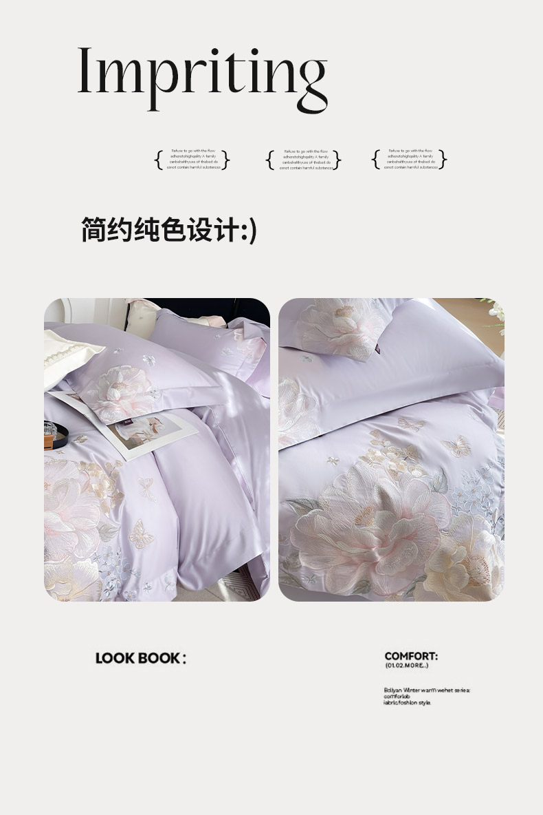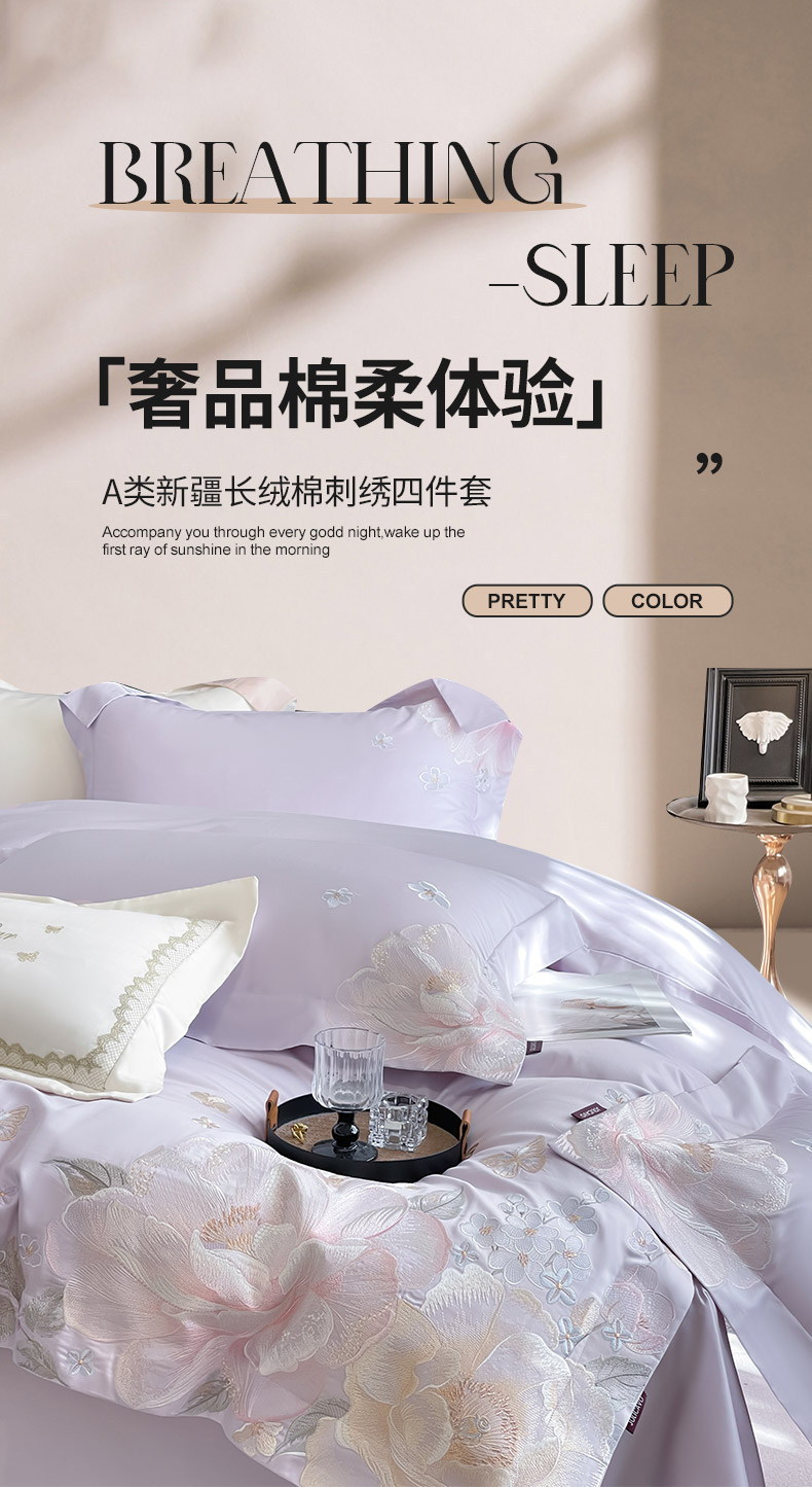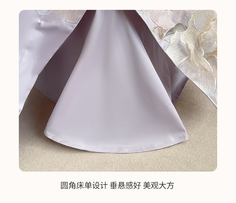 (总) 2026新品A类100支贡缎长绒棉纯棉四件套全棉重工刺绣全工艺被套床单床笠高端轻奢风床上用品-朵卿,朵卿-黛紫,朵卿-白粉,朵卿-慕蓝,朵卿-颜粉