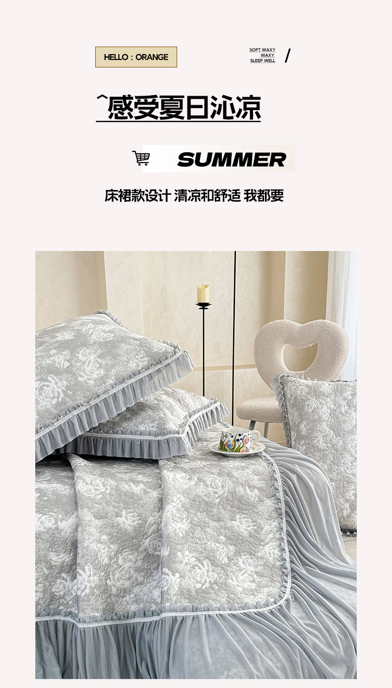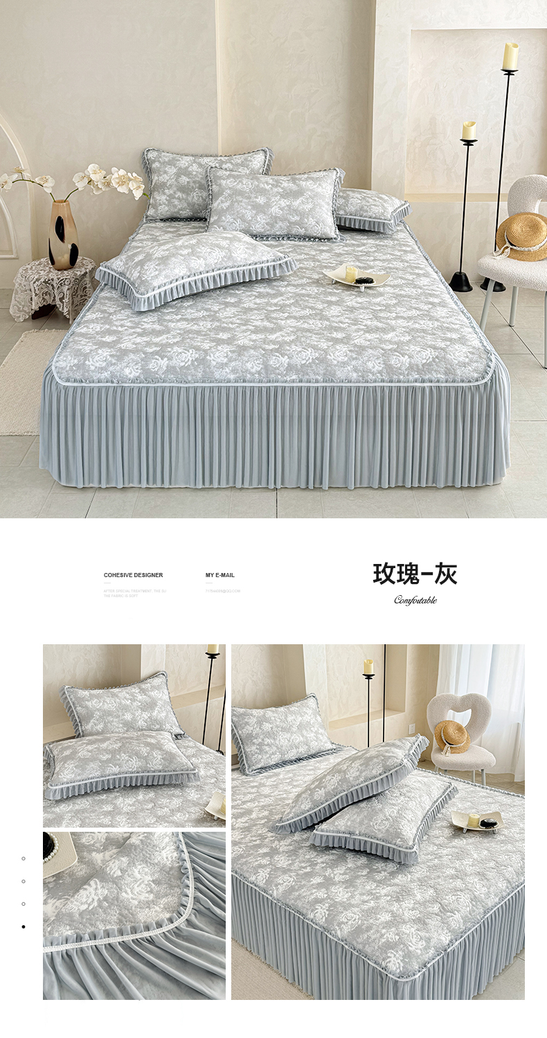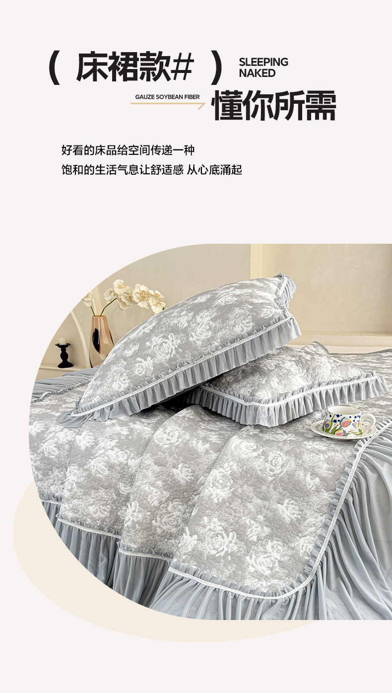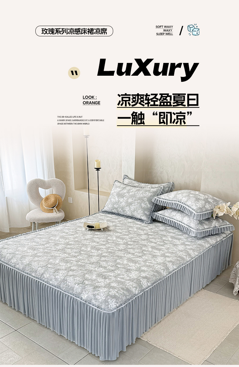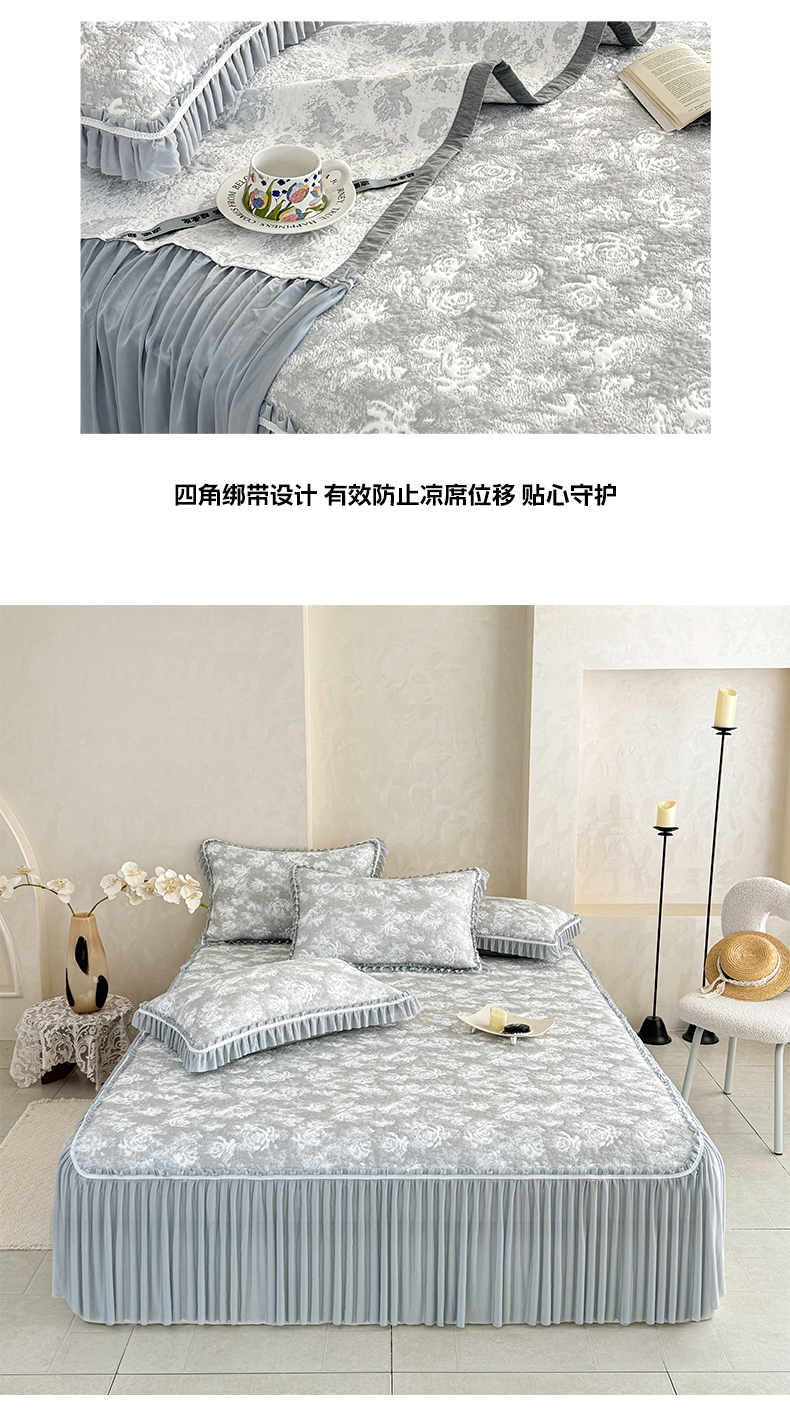 商品名称:雅居纺家纺 2026新款床裙款玫瑰系列凉感席 玫瑰-灰