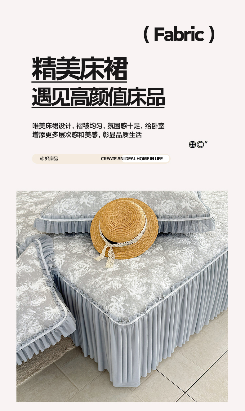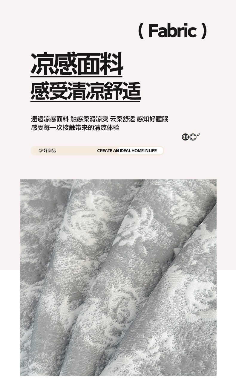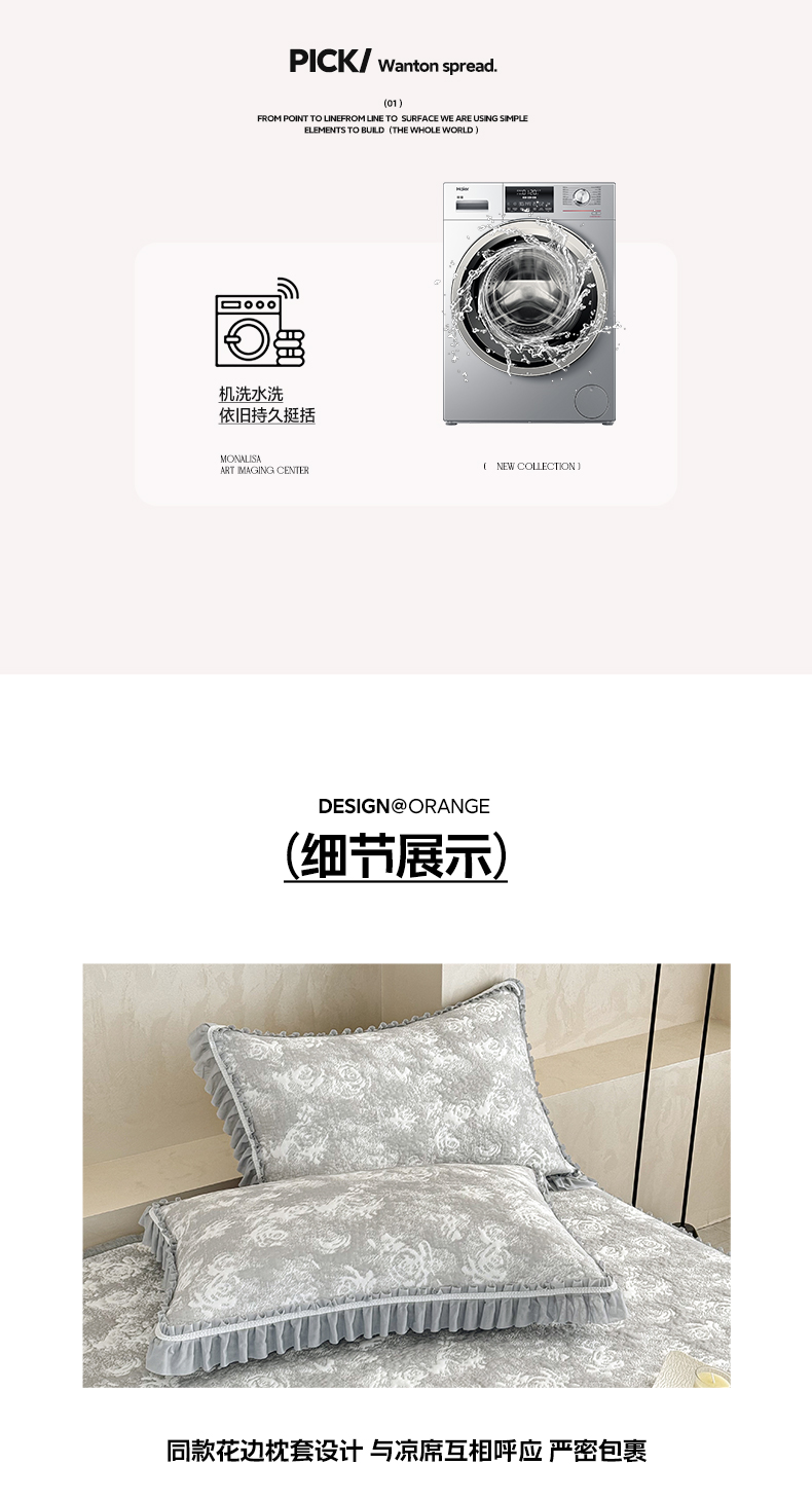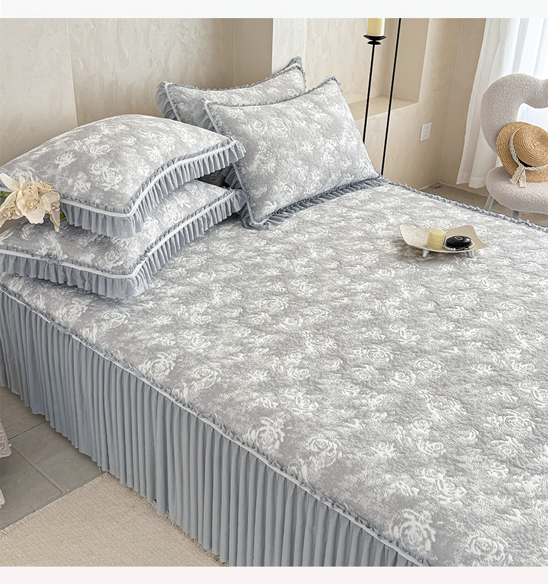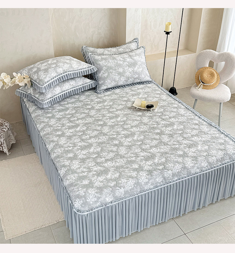 商品名称:雅居纺家纺 2026新款床裙款玫瑰系列凉感席 玫瑰-灰