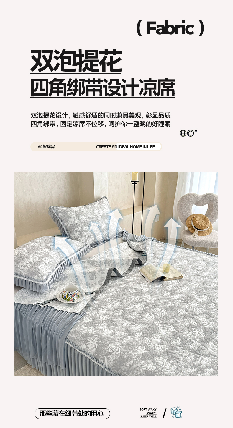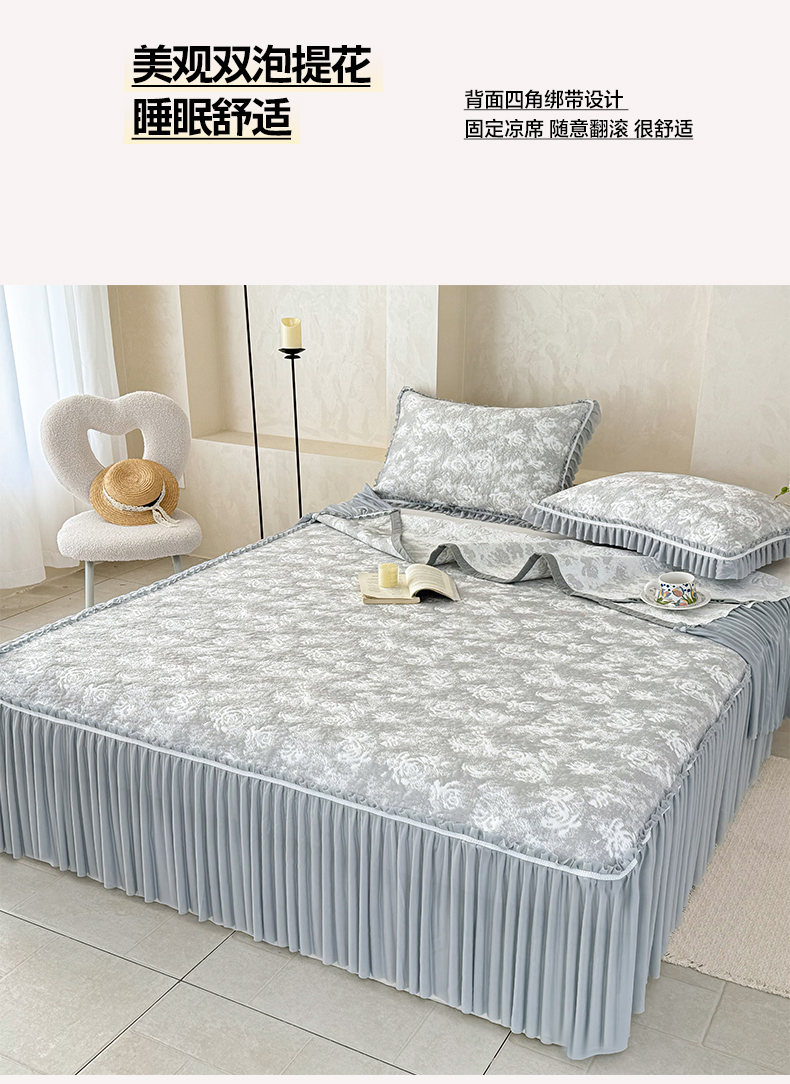 (总)雅居纺家纺 2026新款床裙款玫瑰系列凉感席,玫瑰-粉,玫瑰-灰,玫瑰-蓝,玫瑰-绿