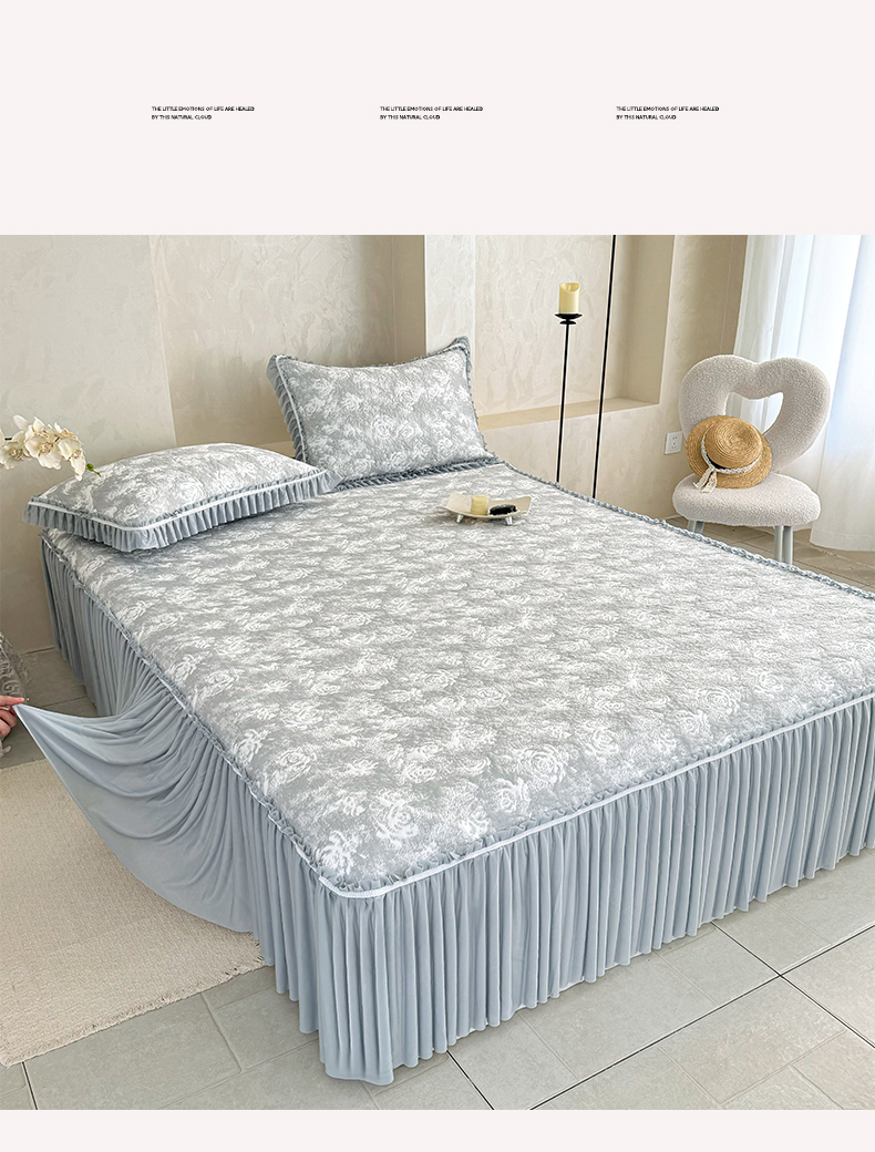 雅居纺家纺 2026新款床裙款玫瑰系列凉感席 玫瑰-灰