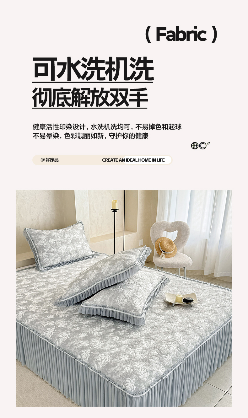 (总)雅居纺家纺 2026新款夏日花语系列凉感床裙凉席,夏日花语-粉,夏日花语-灰,夏日花语-蓝