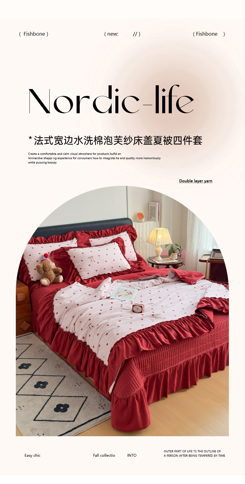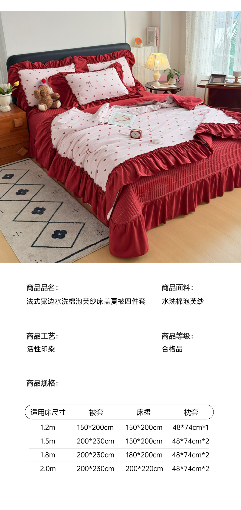 商品名称:(总)铠畅 2026新款法式宽边水洗棉泡芙纱床盖款夏被四件套