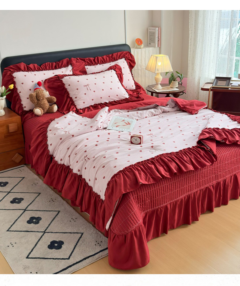 (总)铠畅 2026新款法式宽边水洗棉泡芙纱床盖款夏被四件套,春日小马,粉调爱心,粉雾波点,赫本豹影,红裙花影,红雾波点,红韵玫瑰,黄条萌宠,咖调爱心,玫瑰园,抹茶玫瑰,奶粉kt,奶格蝴蝶结,奶咖kt,奶蓝kt,森系花园,桃心木马,兔小姐,雾蓝波点,薰衣草女孩