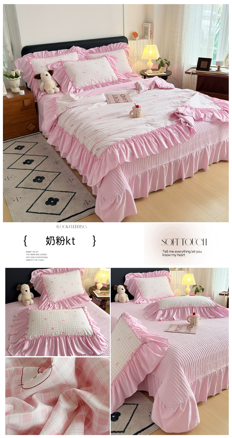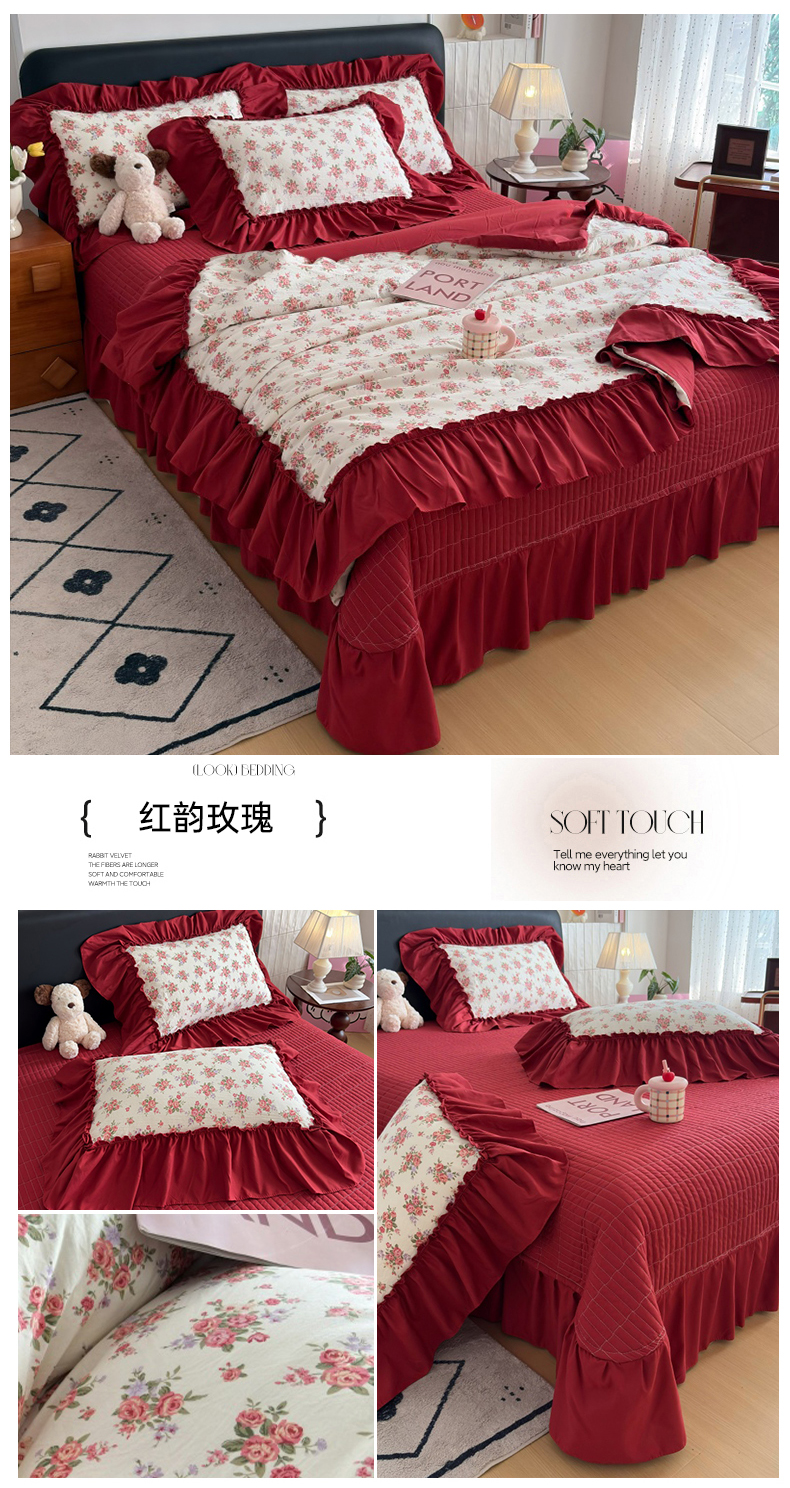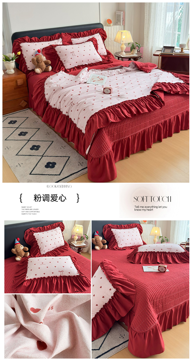 (总)2026 铠畅新款韩系古法韩国水洗棉仿棉云感棉法式浪漫大花边床盖四件套,春日小马,粉调爱心,粉雾波点,赫本豹影,红调花漾,红裙花影,红雾波点,红韵玫瑰,黄条萌宠,咖调爱心,蓝雾波点,玫瑰园,抹茶玫瑰,奶粉kt,奶格蝴蝶结,奶咖kt,奶蓝kt,森系花眠,桃心木马,兔小姐,薰衣草女孩