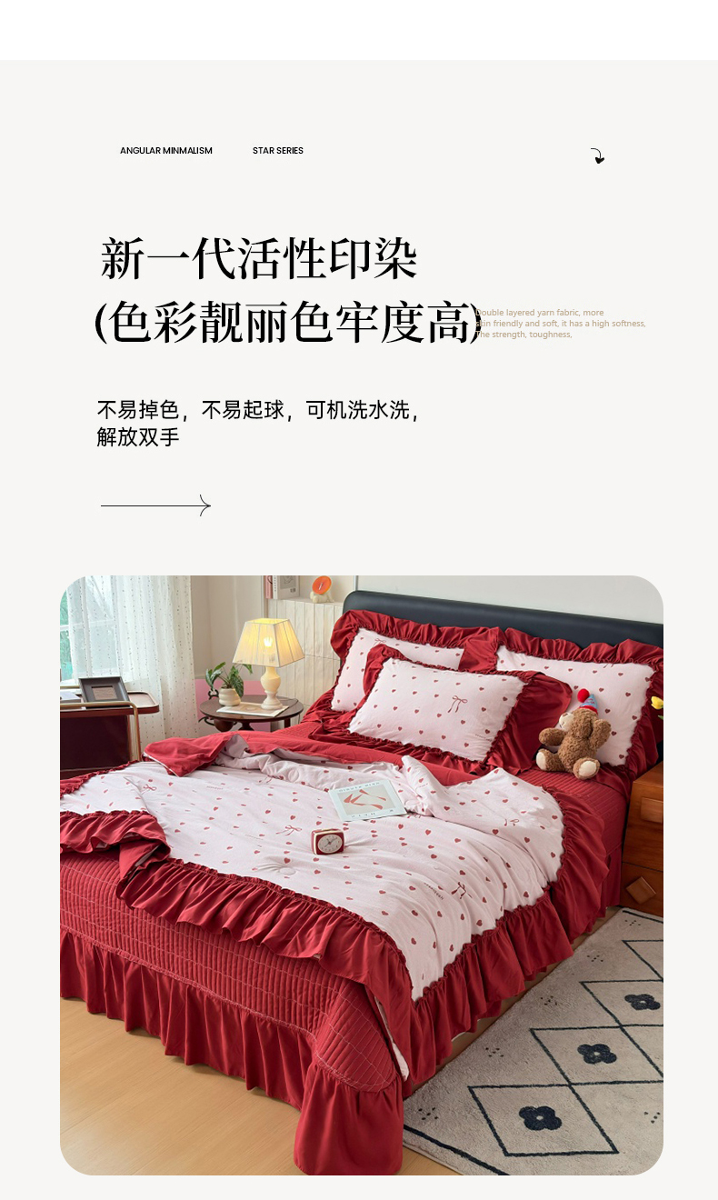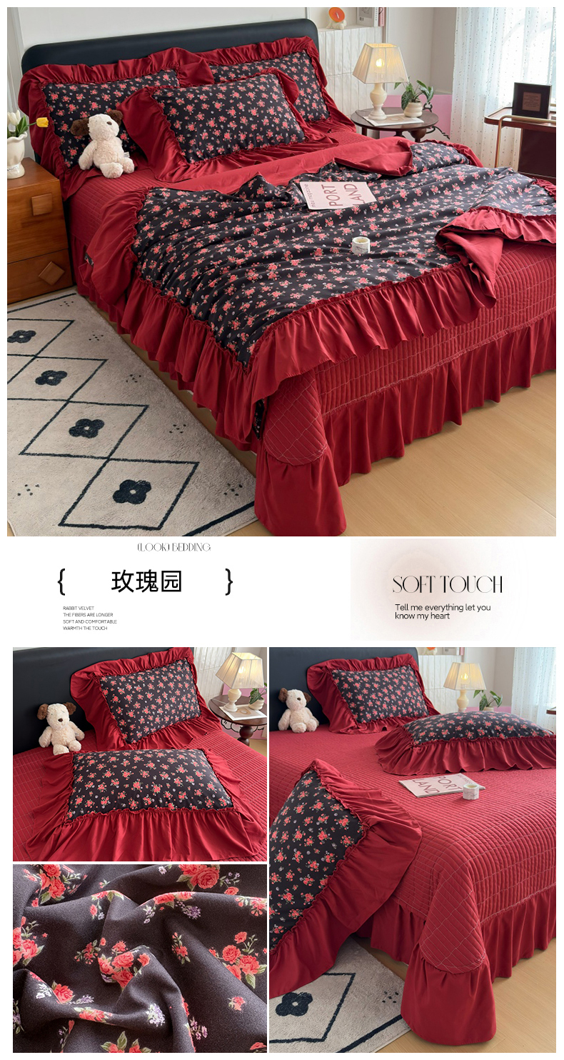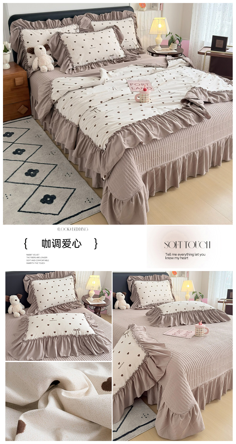 (总)2026 铠畅新款韩系古法韩国水洗棉仿棉云感棉法式浪漫大花边床盖四件套,春日小马,粉调爱心,粉雾波点,赫本豹影,红调花漾,红裙花影,红雾波点,红韵玫瑰,黄条萌宠,咖调爱心,蓝雾波点,玫瑰园,抹茶玫瑰,奶粉kt,奶格蝴蝶结,奶咖kt,奶蓝kt,森系花眠,桃心木马,兔小姐,薰衣草女孩